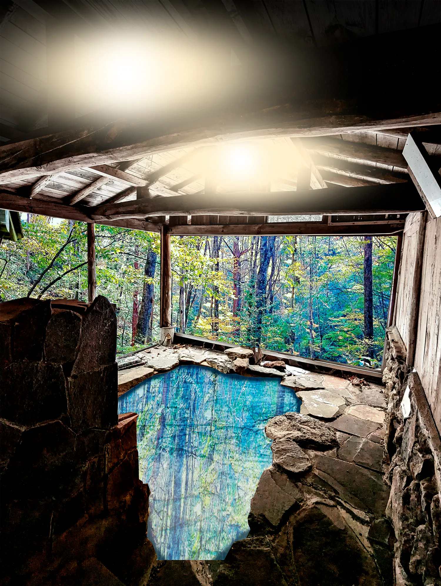 今回のプロジェクトの中心は、根子岳山荘に復活する入浴施設「湯垢離(ゆごり)」の再生です。湯垢離は、心を清めるためにお湯で禊を行う、日本古来の儀式です。この施設からは、落差82メートルの権現滝を一望できます。かつて千手滝とも呼ばれ、千手堂が祀られていたこの場所で、地権者である米子不動尊本坊米子瀧山不動寺のご厚意により、冷えた身体を癒す神聖な湯が蘇ります。