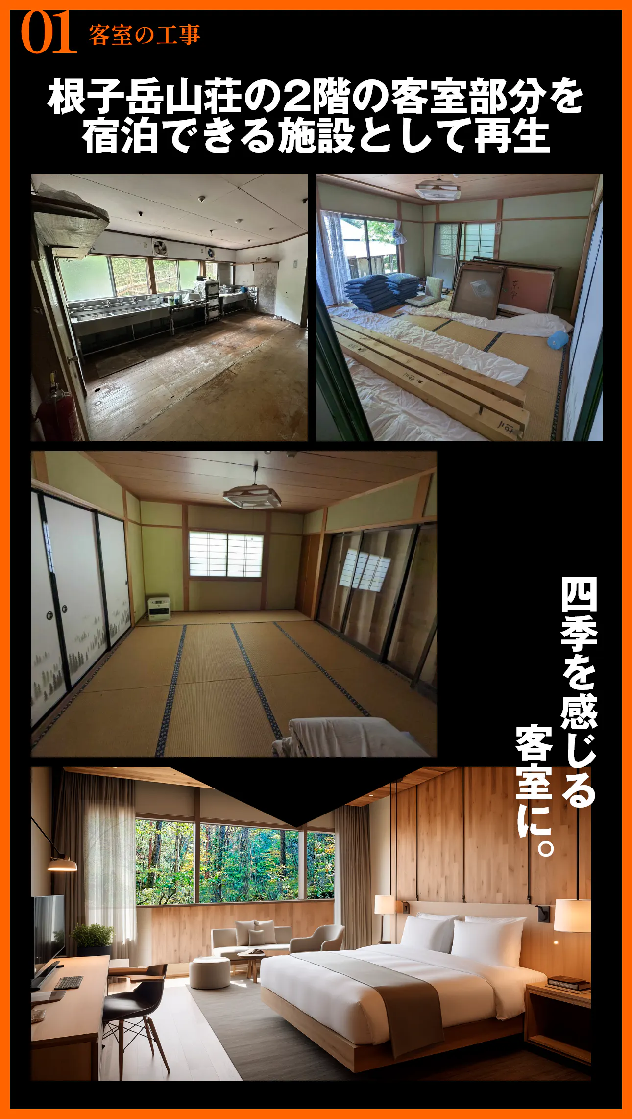 再建にあたって復旧しなければならない設備は他にもありますが、今回のプロジェクトでは客室の整備と入浴施設の工事を行いたいと考えています。