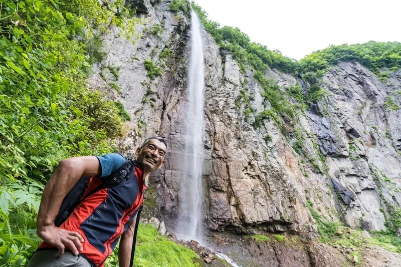 私は日本や世界の山をたくさん見てきましたが、この米子大瀑布は素晴らしいポテンシャルを秘めた場所です。断崖絶壁と二条の滝が織り成す人間の叡知を越えた絶景、そしてこの地に立つと感じるパワフルな自然の生命力と修験の歴史のインパクト。