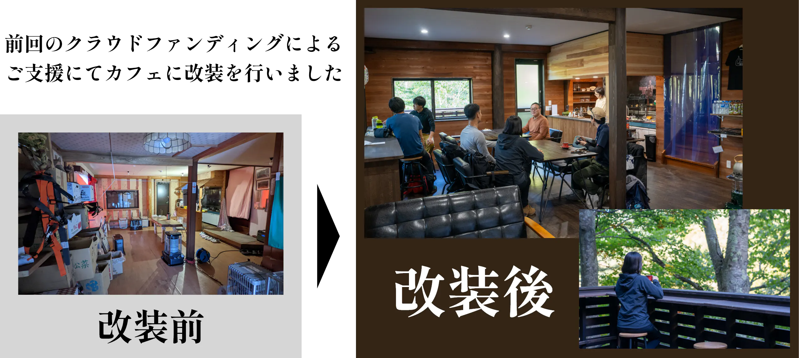 2023年5月、信州須坂の米子大瀑布に存在する"廃墟と化した山小屋"を再生するCampfireのプロジェクトを実施させていただきました。316人の皆様から5,107,000円の支援をいただき、山小屋の1階を改装し、2023年10月にオープンしたカフェ「根子岳山荘」には開業後1カ月で1000人ものお客さんにお越しいただき、米子大瀑布に賑わいを取り戻すことができました。本当にありがとうございました!