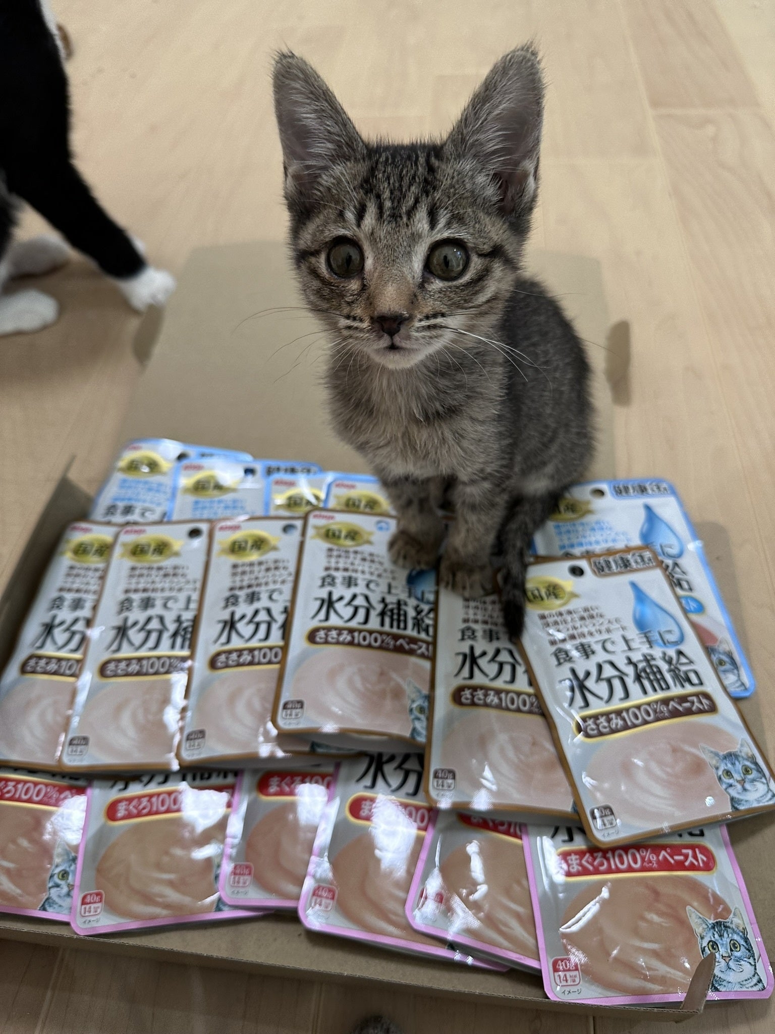 さて、本日もたくさんの猫ちゃんのご飯をいただきました!いつもご支援いただき、誠にありがとうございます。猫ちゃんたちが大好きなご飯がたくさんあり、とても助かっています。
