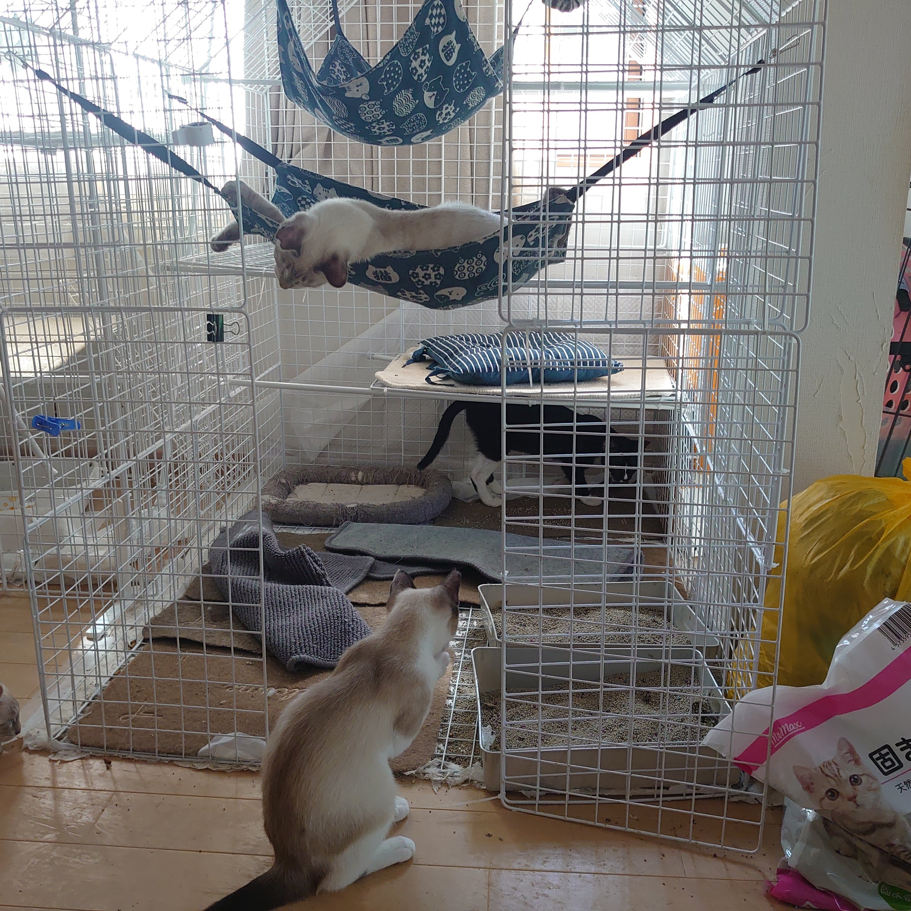 やんちゃ盛りなのでお部屋もすぐ汚れケージ内も遊んでぐちゃぐちです。笑