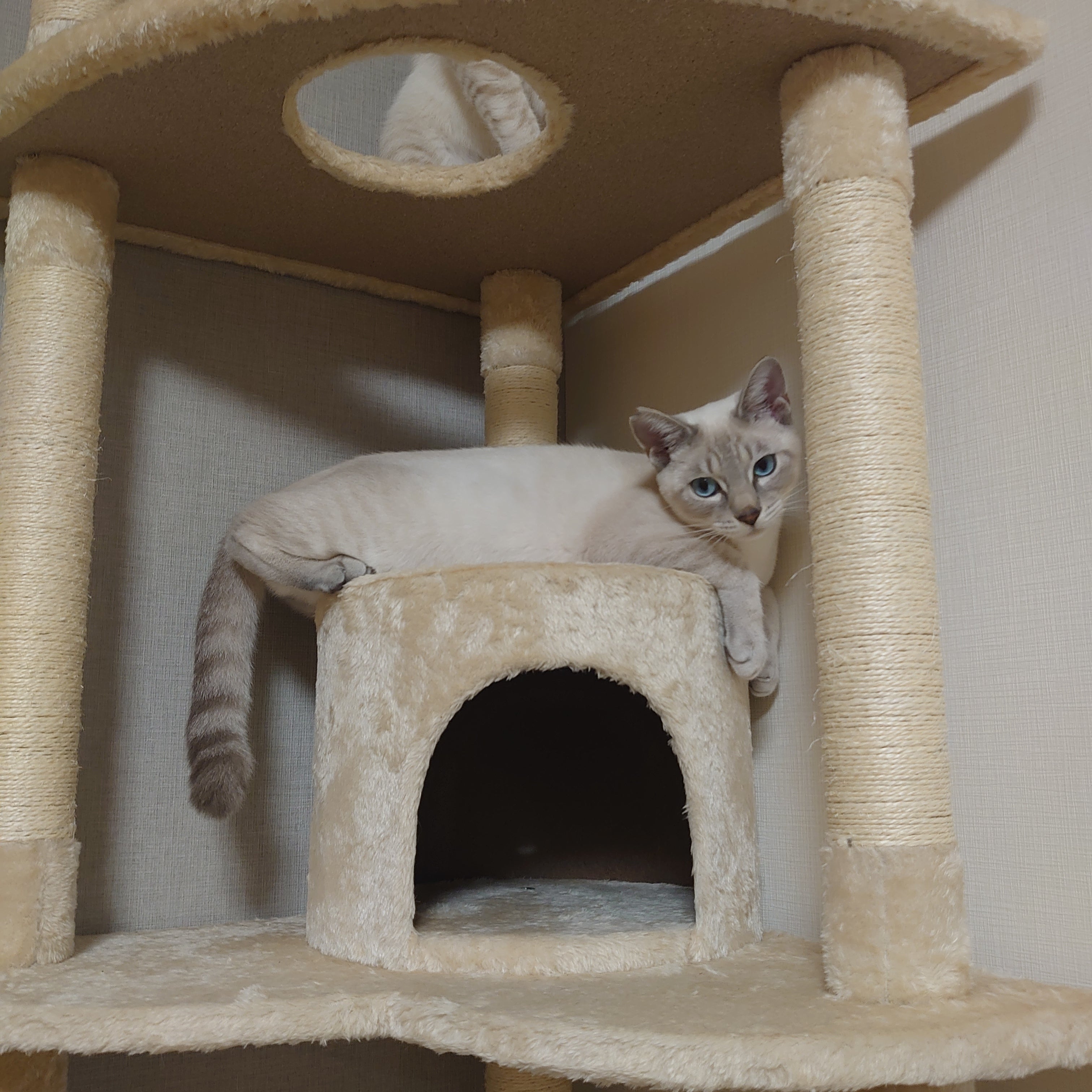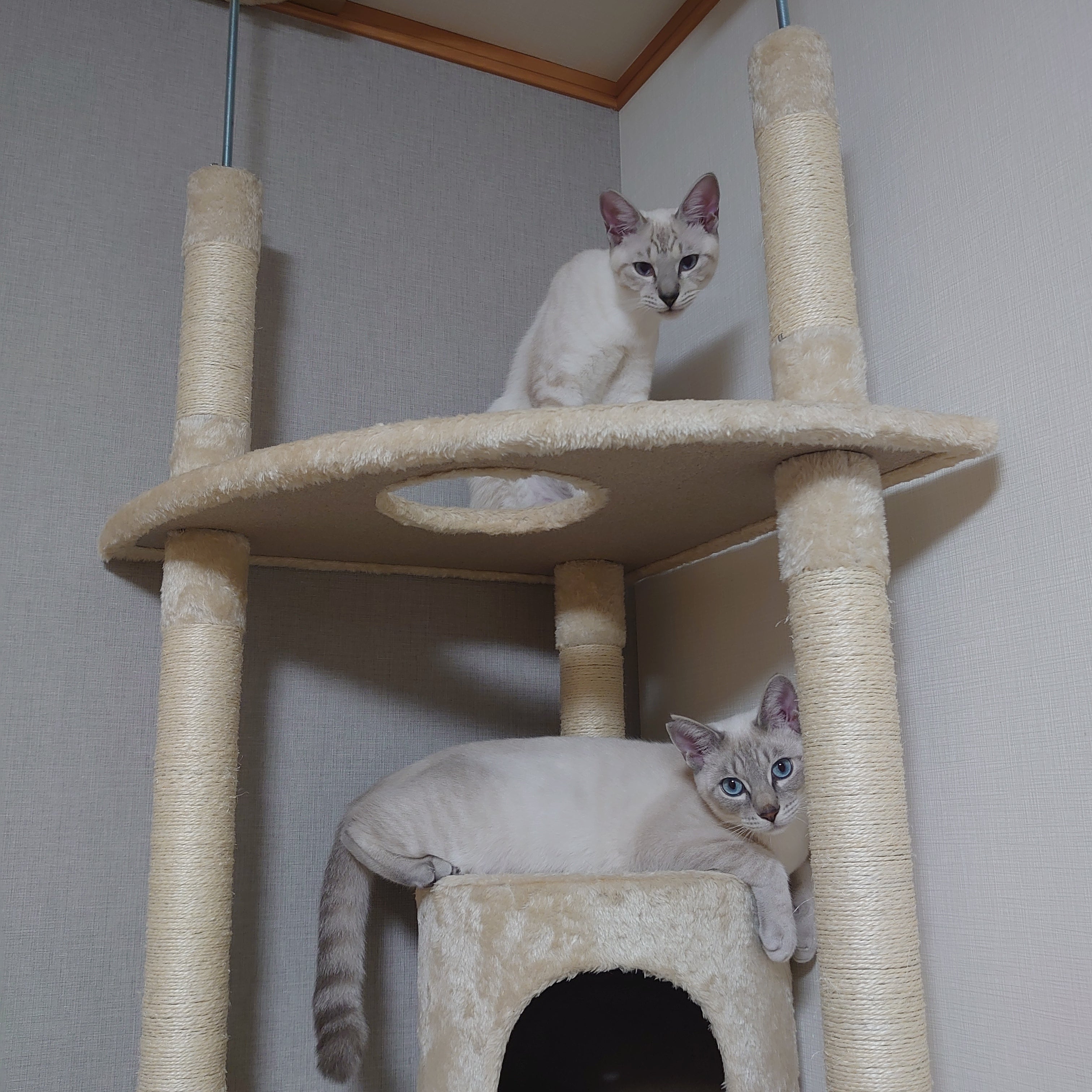 キャットタワーで休憩中の2人でした。