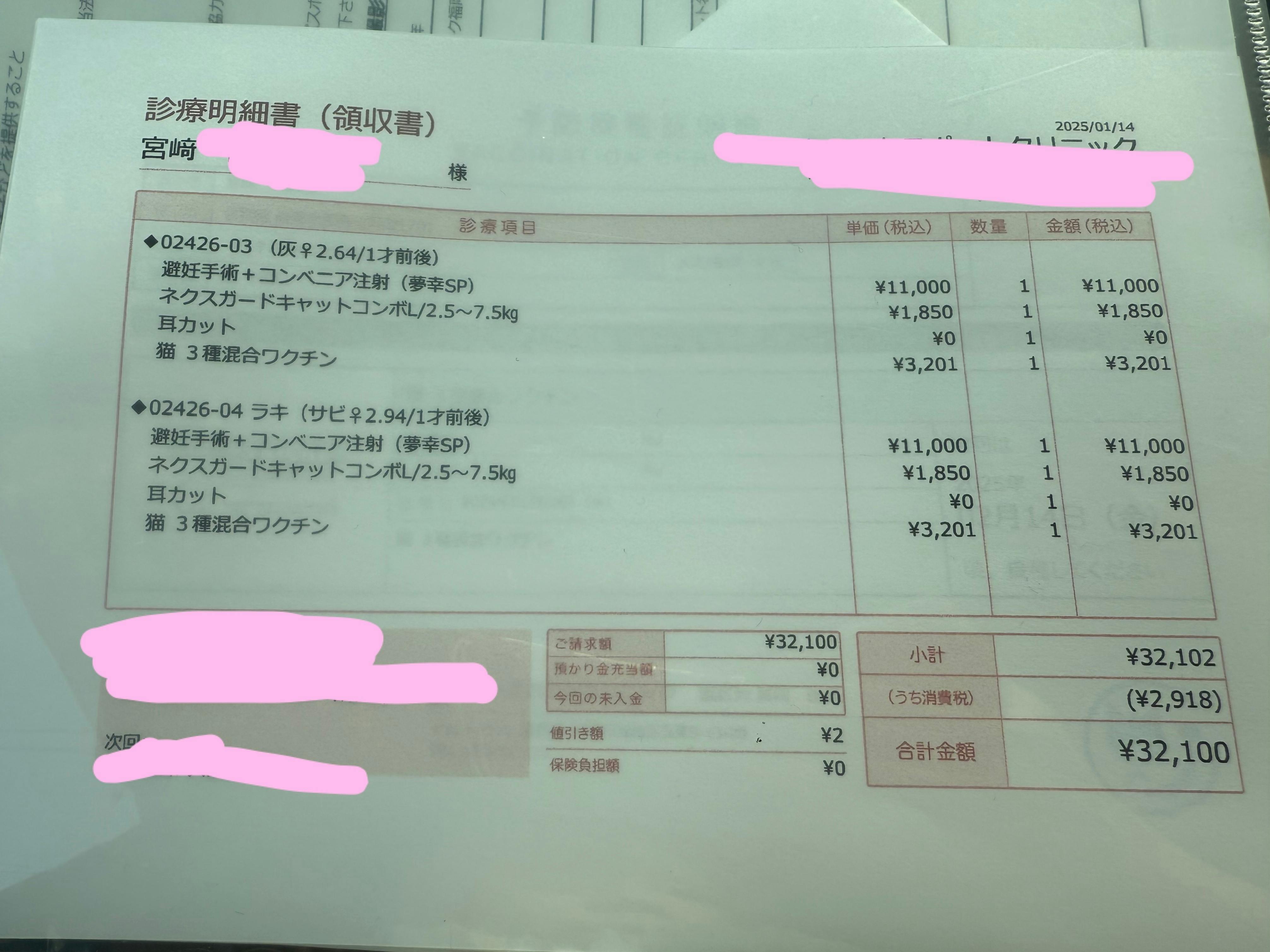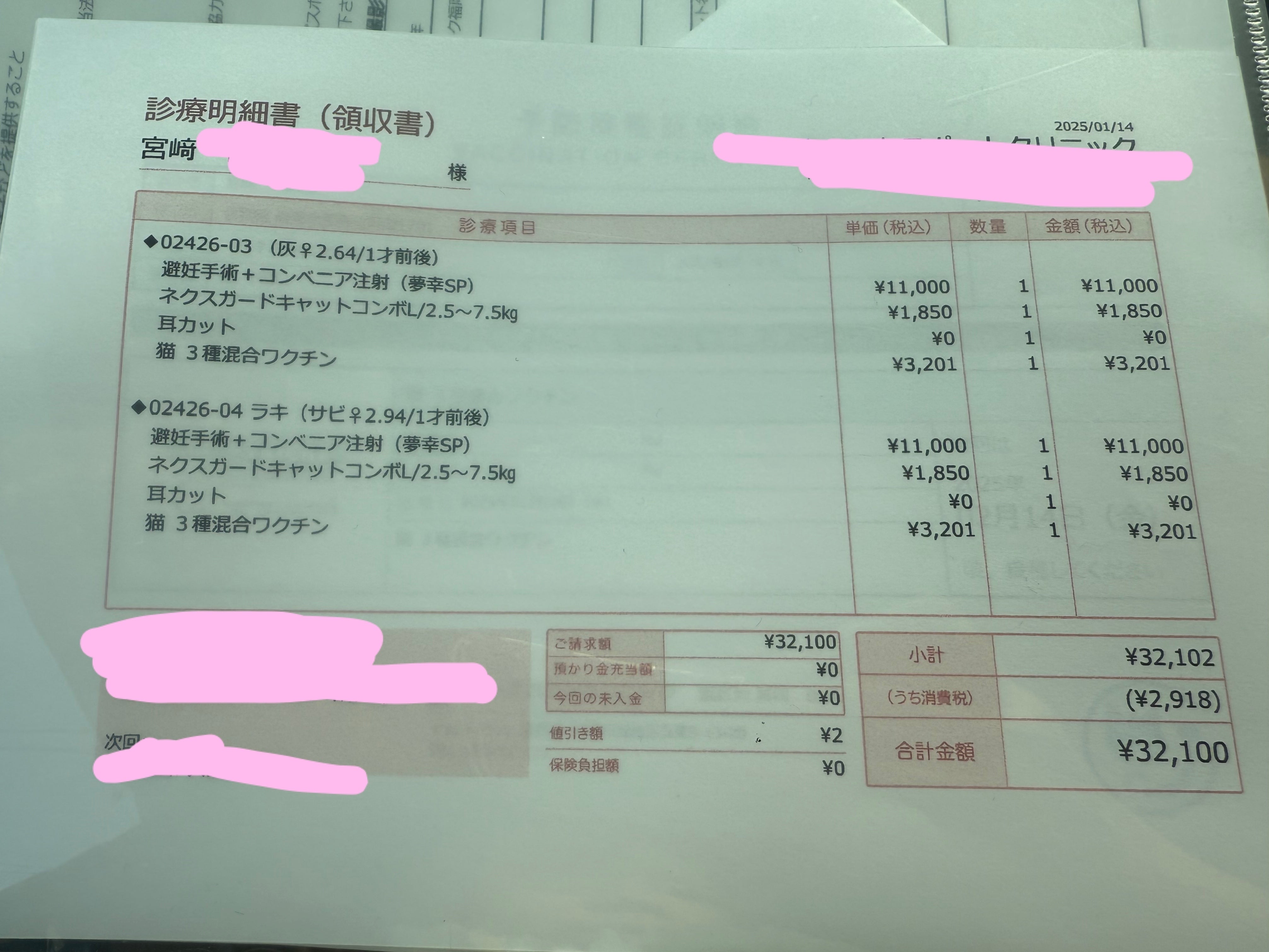 キーテイルさんのチケットを使用しましたが、ネクスガード、ワクチンを行ったので結構出費しちゃいました。