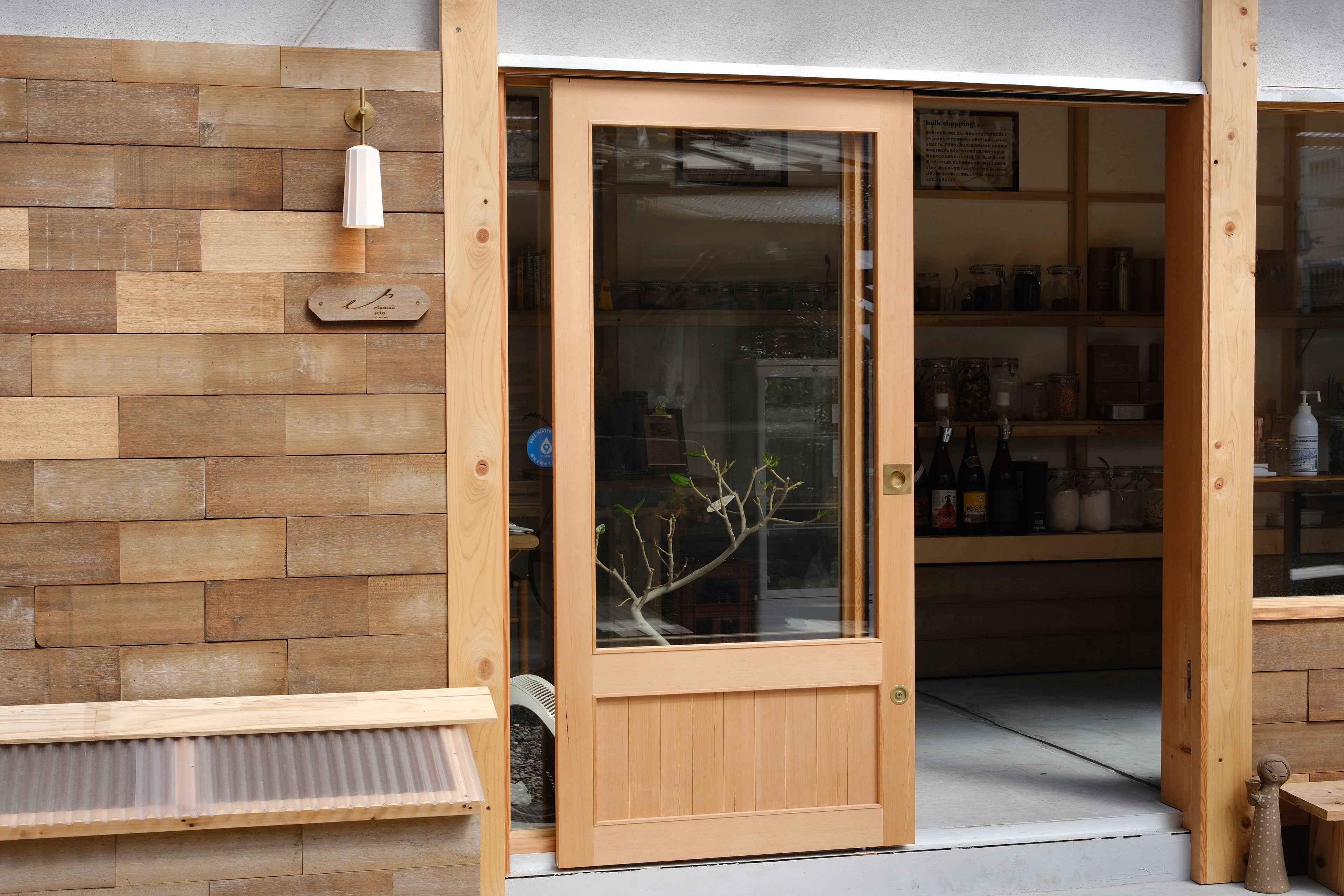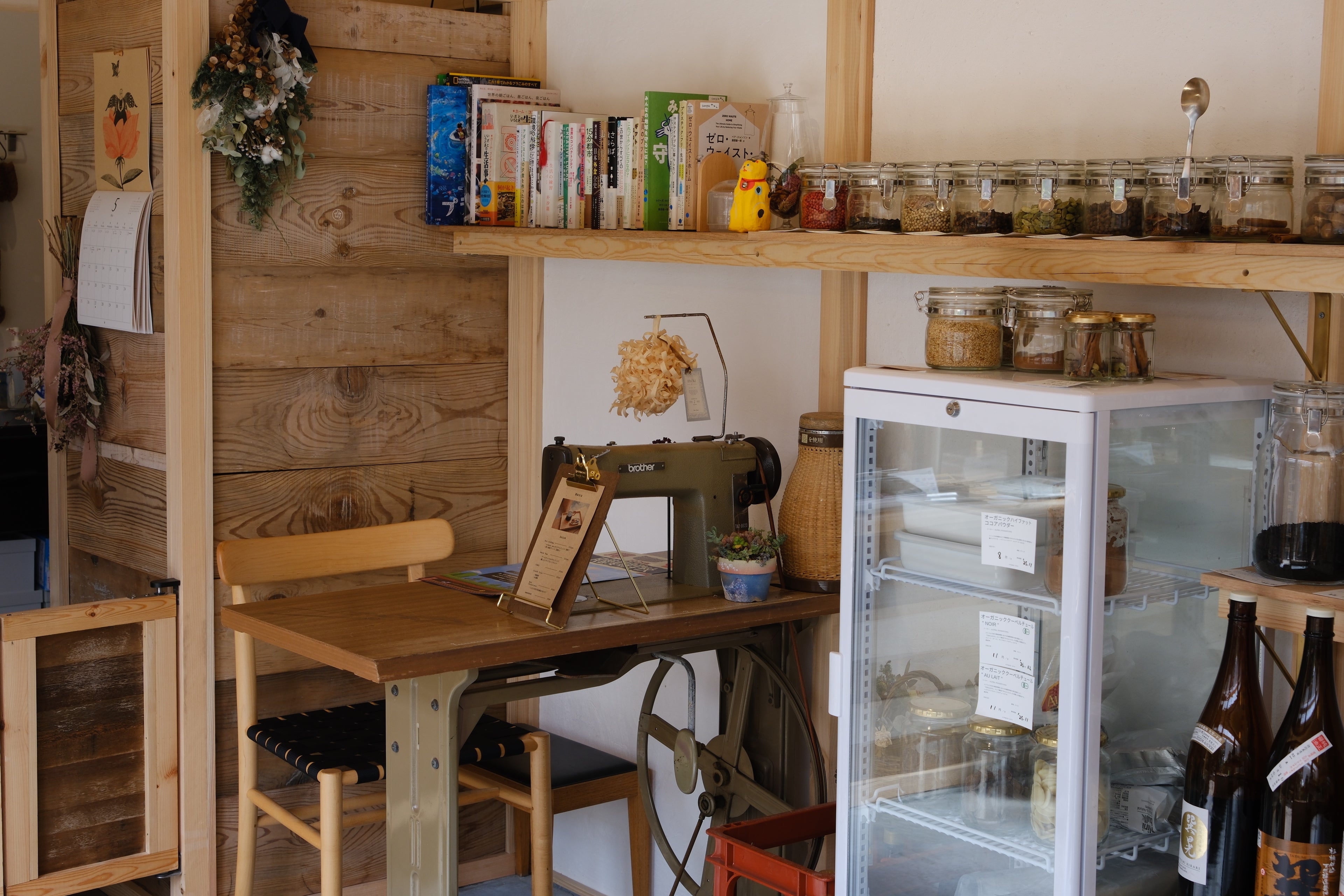 まず店舗の方ですが、最近店内の商品陳列棚が増えました。食品、日用品ともに商品数が増えてきたこともあり、これまでベンチとしていた場所にも棚を設置いたしました(トップ写真ご参照)。暮らしや贈り物に役立てるアイテムがあるかもしれませんので、ぜひ見にきてくださいね。