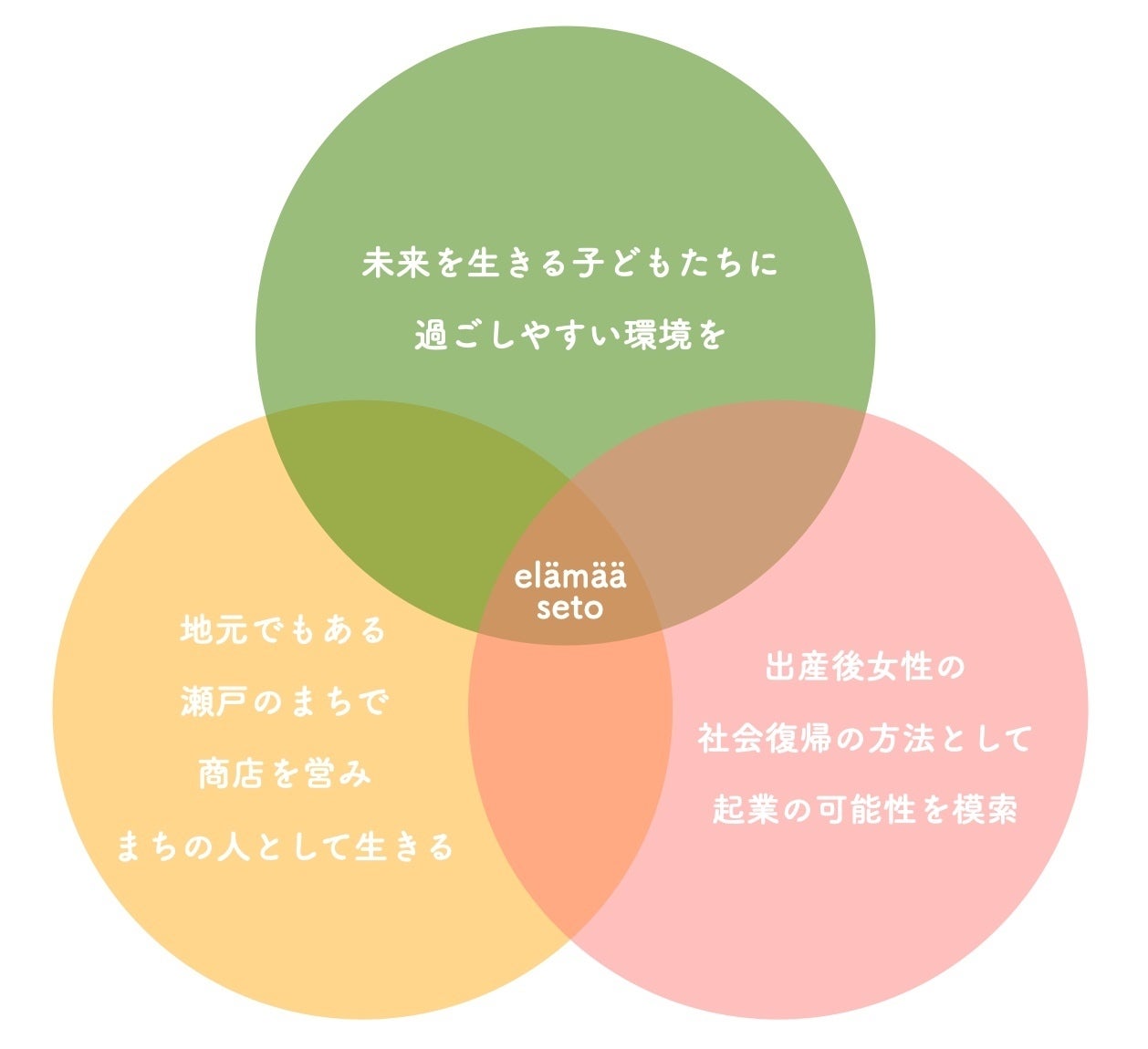 私は現在4人の小学生の母で、elämää setoは子どもの学びから派生し誕生したお店です。お店を開く前には育児と仕事の両立に挫折し、子育てに真剣に向き合ってきた年月があります。8年ぶりの新たなキャリアとして、以下の3つの思いが動機となり起業に挑戦している最中です。