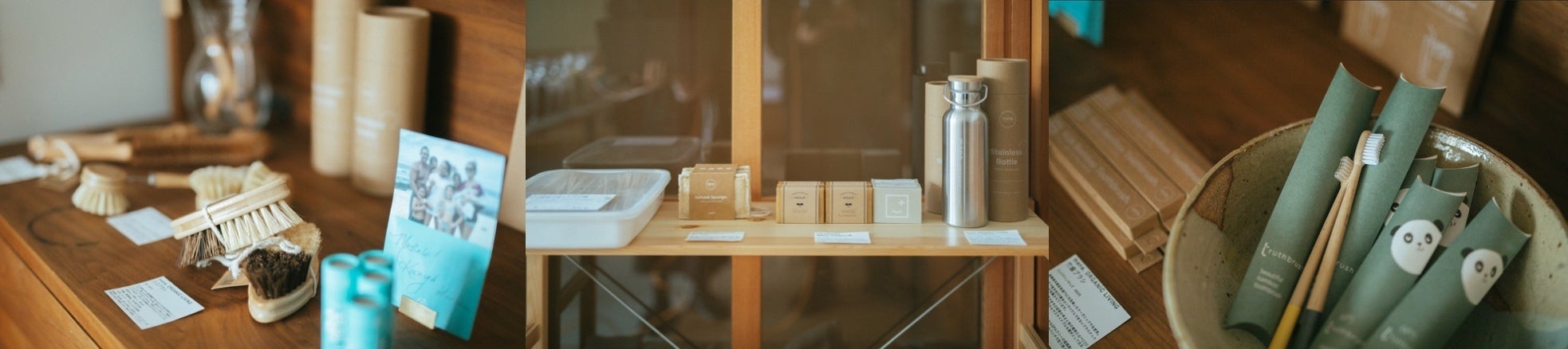 そこから地元の創業塾へ通い、ゼロウェイストやプラスチックフリーに関する情報を得、ゼロウェイストショップの日本国内でのパイオニア「斗々屋」の研修を受講し、仕入れ交渉を行い、何もかも初めての経験を重ねて自宅の土間スペースに小さなお店を開くに至りました。