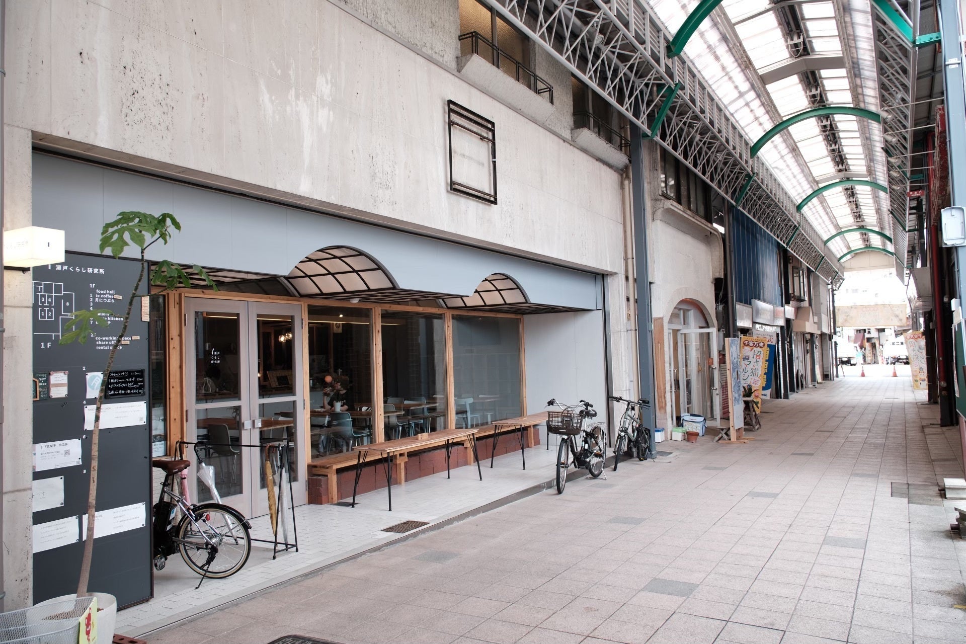 瀬戸市のせと末広町商店街にある「瀬戸くらし研究所」は2023年4月にオープンし、飲食店や物販店、それからコワーキングスペースやシェアオフィス、シェア工房、レンタルスペース等を有する複合施設です。暮らしに関するチャレンジを応援しまちを豊かにする場所として作られ、瀬戸の空き物件を改修して活用する一つの事例でもあります。