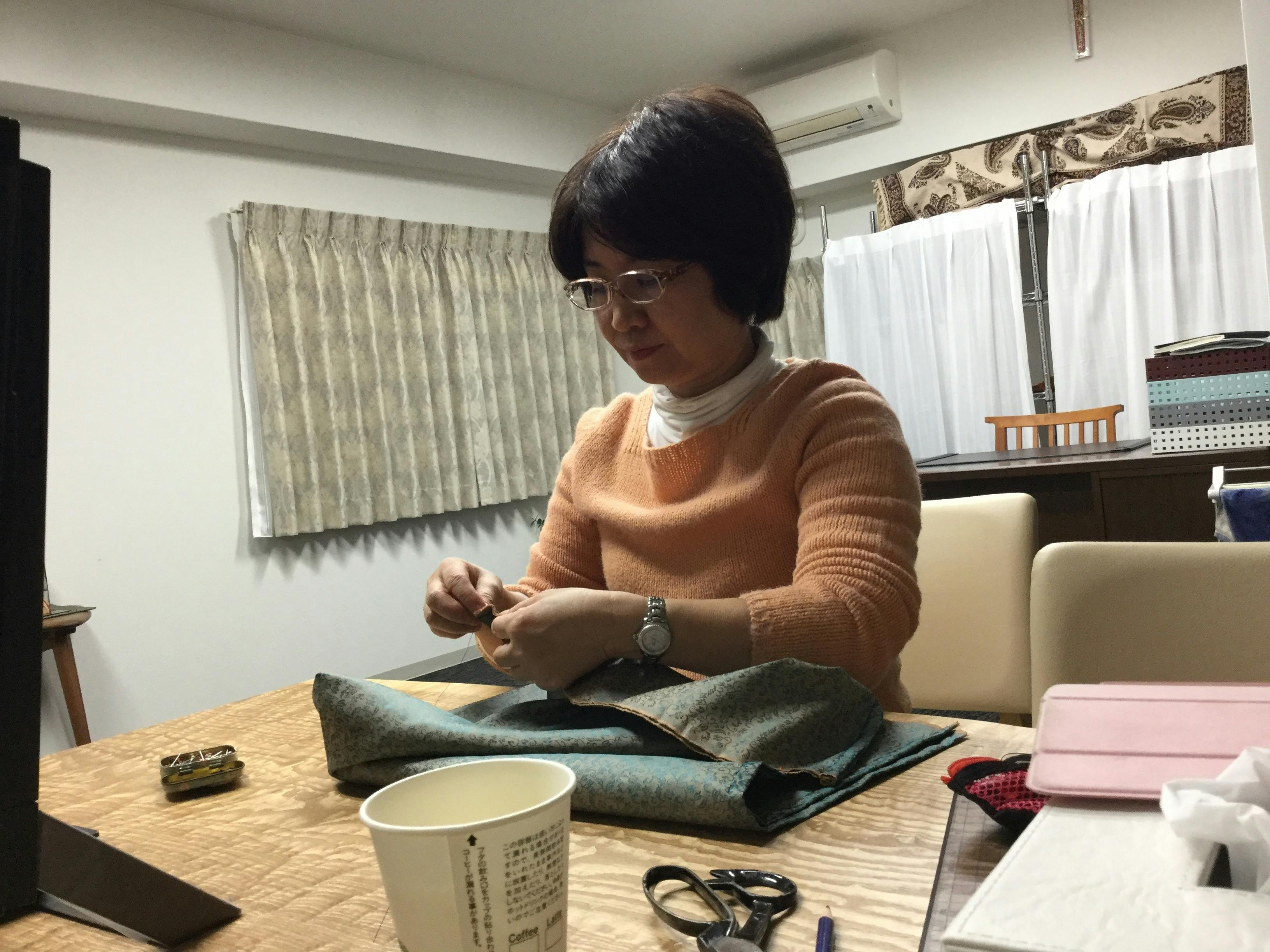 癒されて、楽しくて、全然眠くないでーす!なみ縫いしまーす。オンライン室のカーテンでーす。