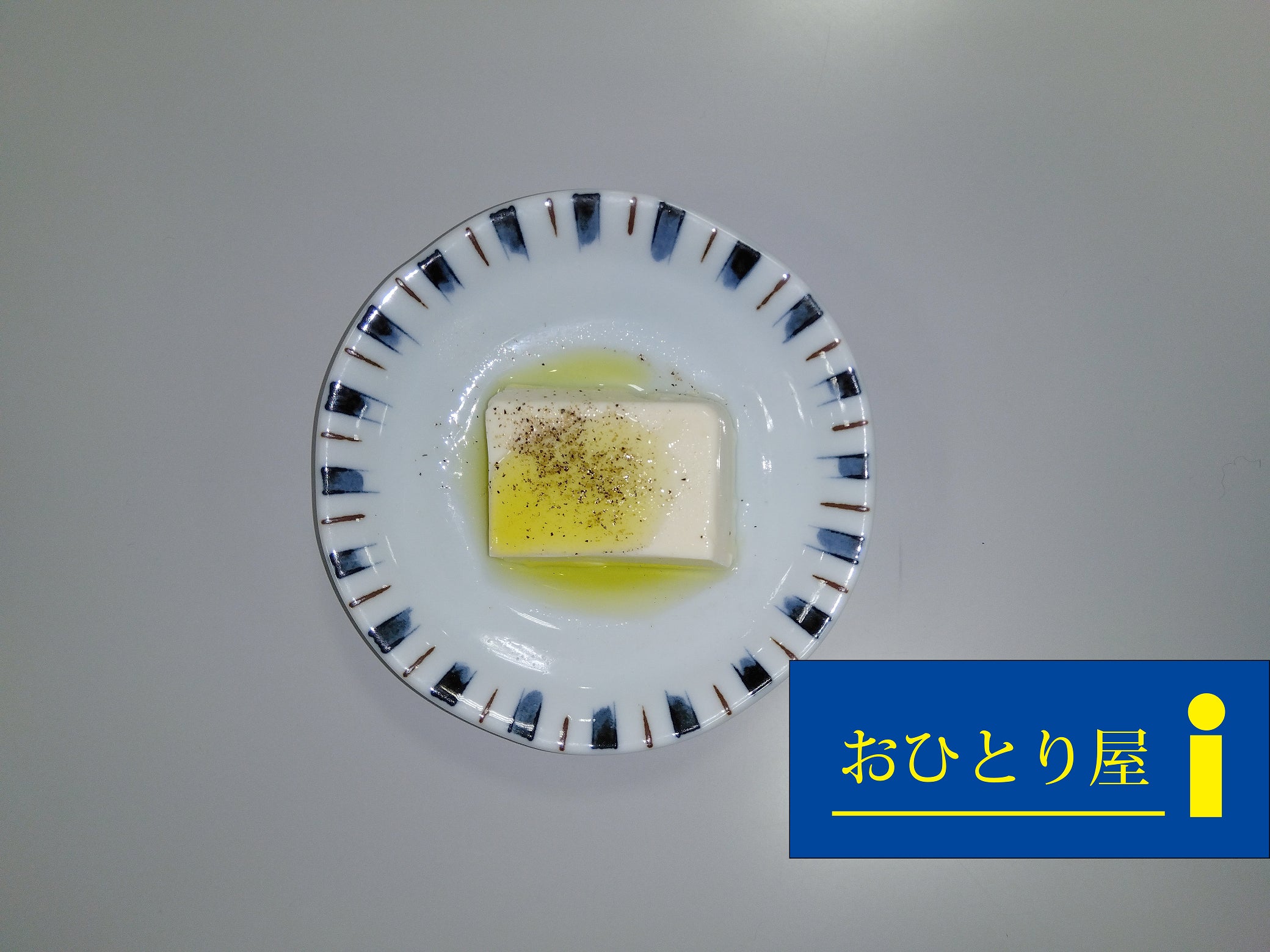 絹ごし豆腐の冷奴をオリーブオイルと黒コショウで味付けしています。オリーブオイルと黒コショウのハーモニーが冷奴の新たな可能性を引き出します。