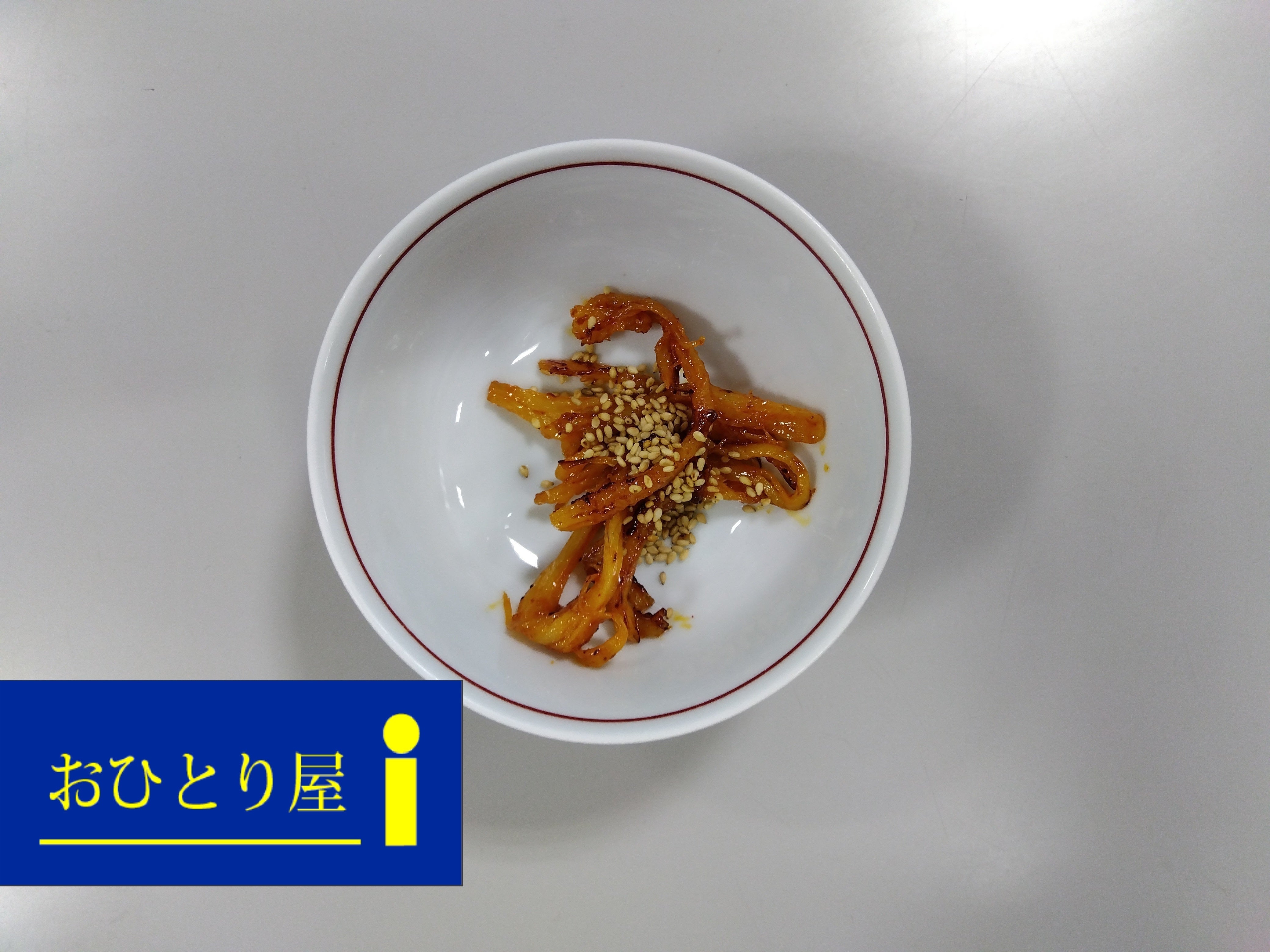 さきいかを日本酒で柔らかく戻し、コチュジャンで味付けしています。噛みごたえがあり、噛めば噛むほど日本酒とコチュジャンの旨味が出てきます。日本酒にもビールにも良く合います。