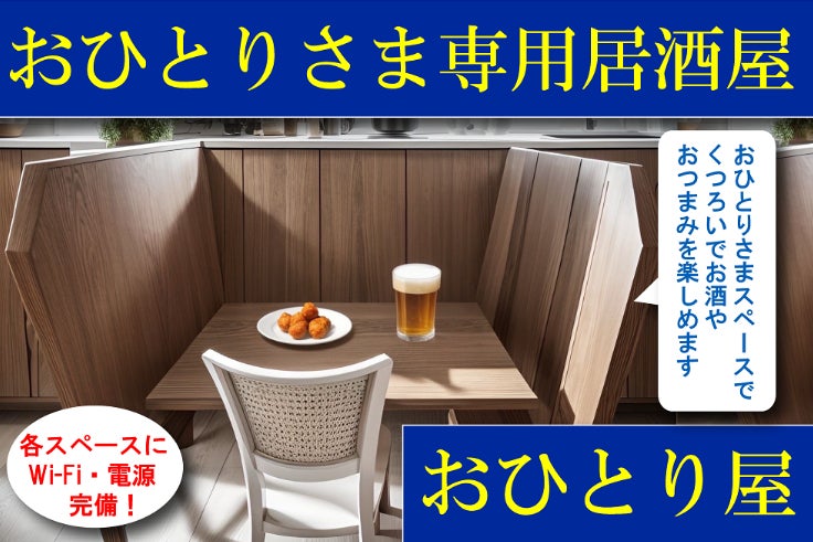 そんな方のために、ひとりで気軽に入れる「おひとりさま専用居酒屋」をオープンしたいと考えています。