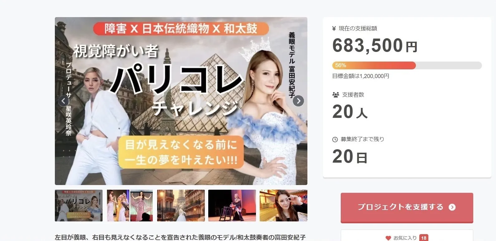みなさまの応援のおかげで、支援期間14日目、残り20日!
