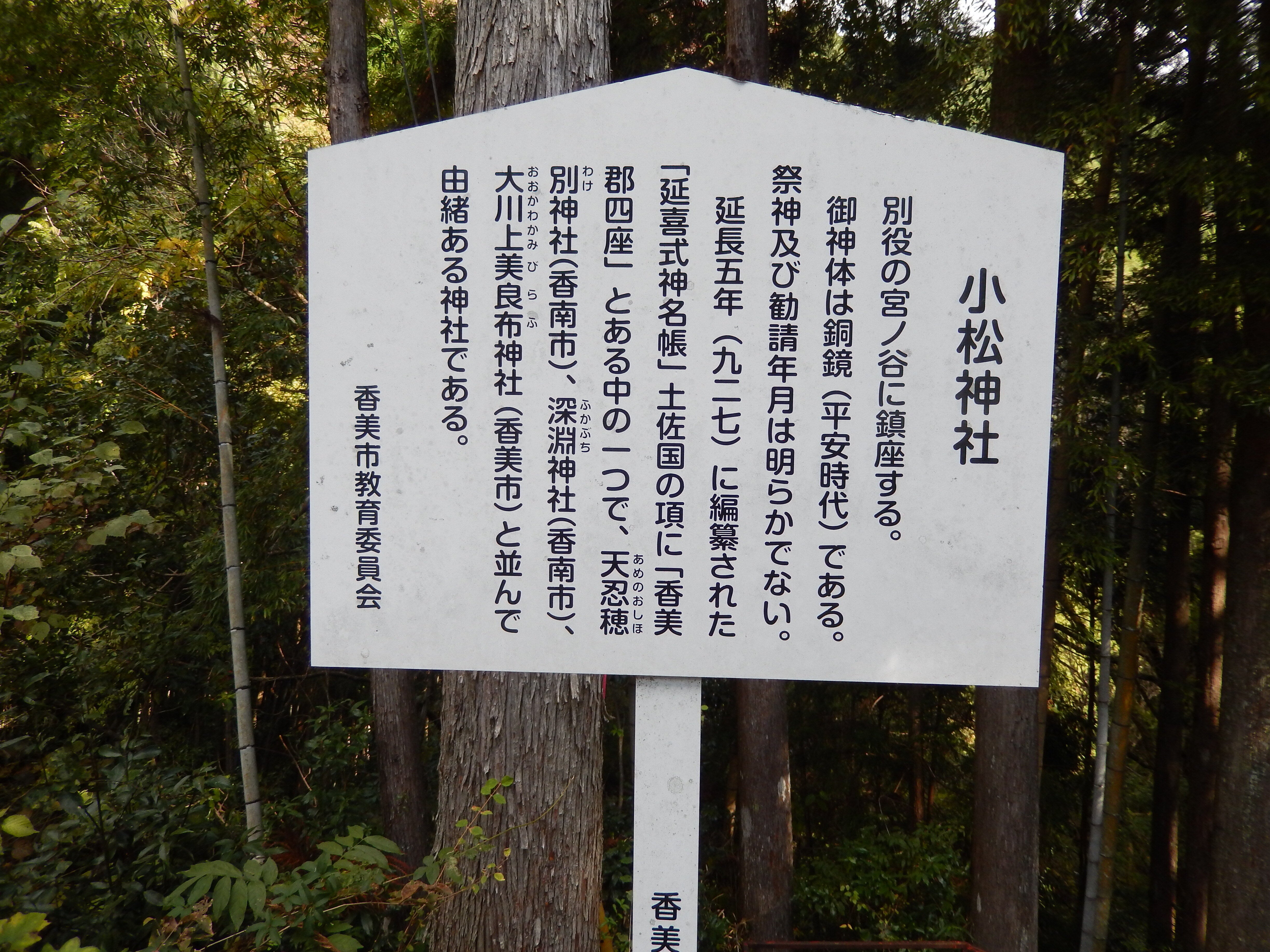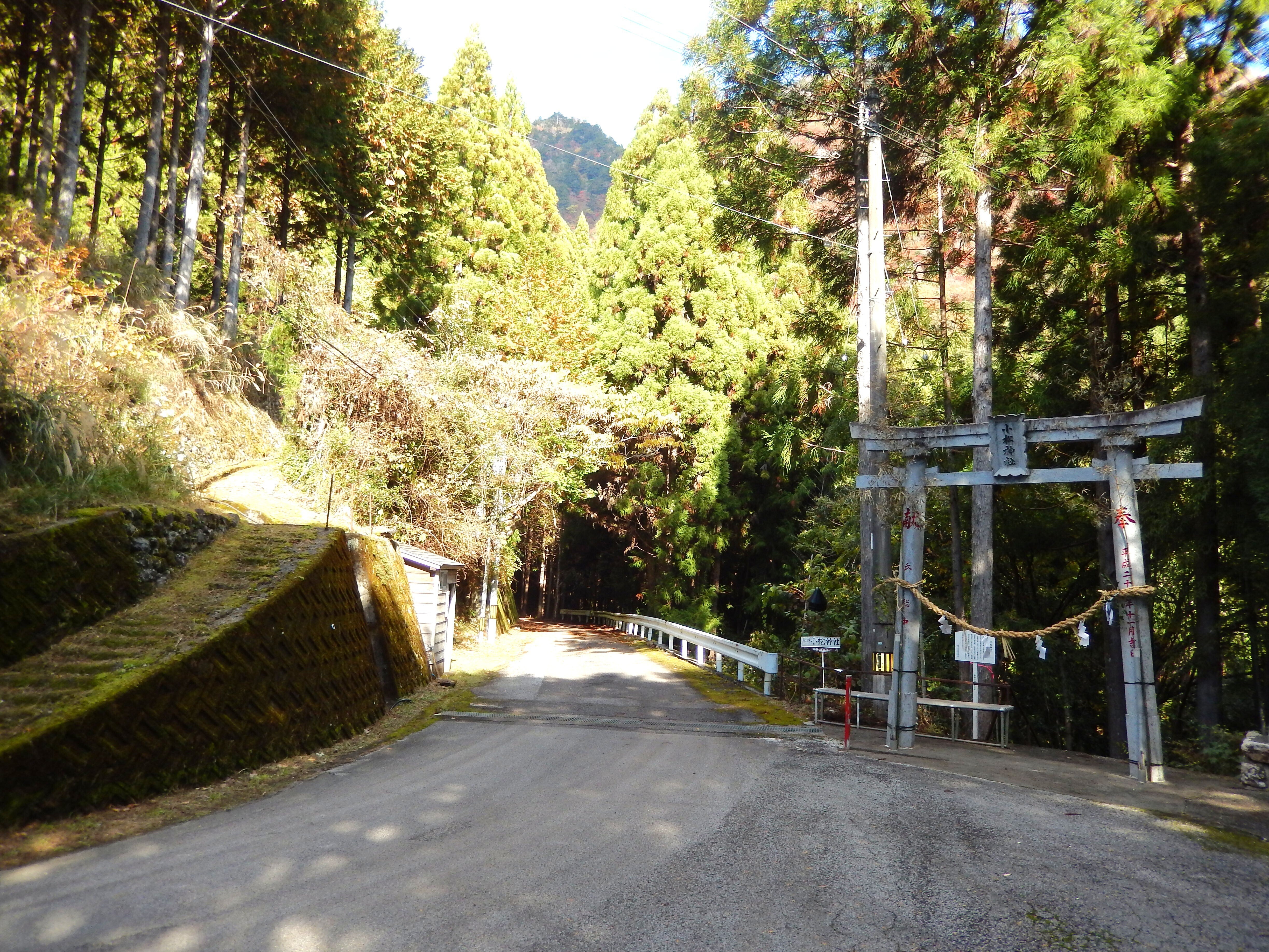ちなみに、小松神社に参拝するためには、マイカー等、車を利用する以外に方法はなく、国道195号線から町道(山道)に入り、殆んど上り坂の森の中を15分位走ると、鳥居が見え、神社の入り口(駐車場)に着きます。