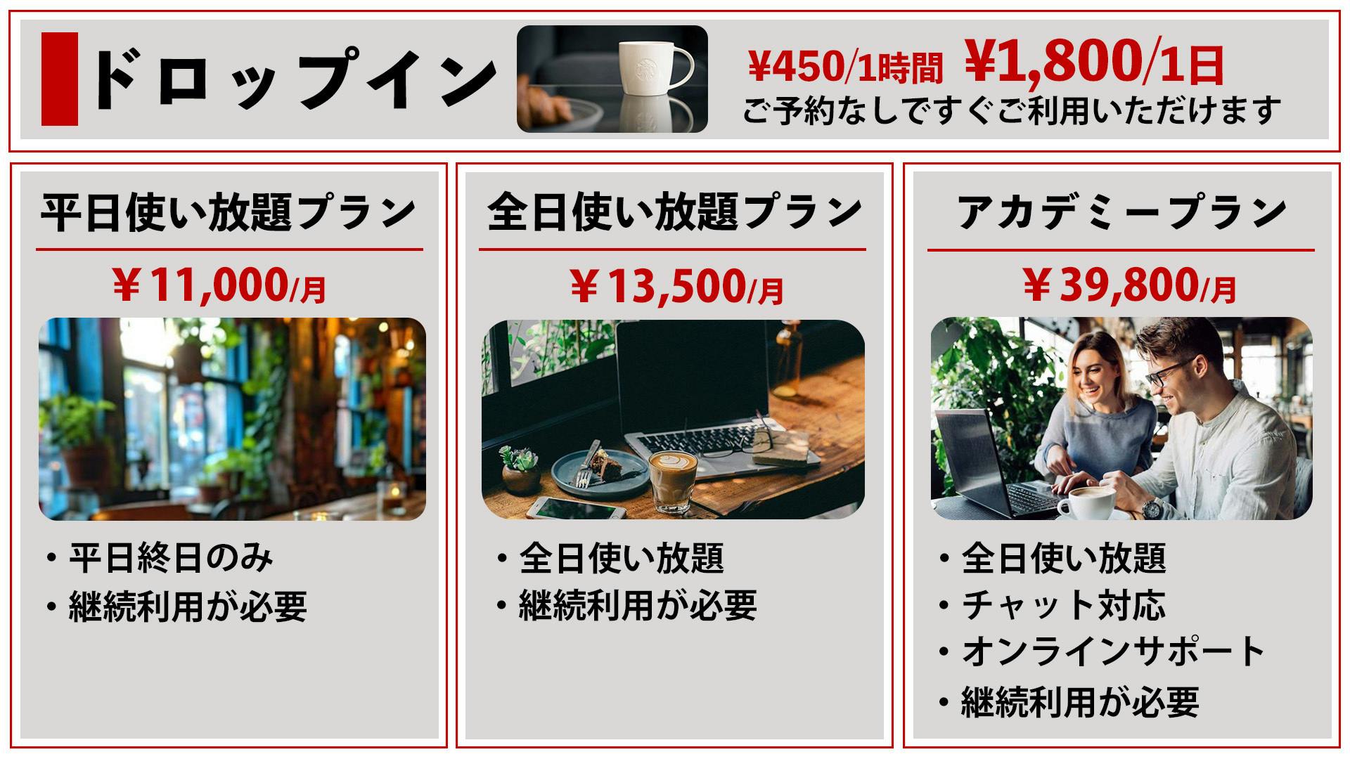 上段が都度利用、下段が月会員のプランになります。