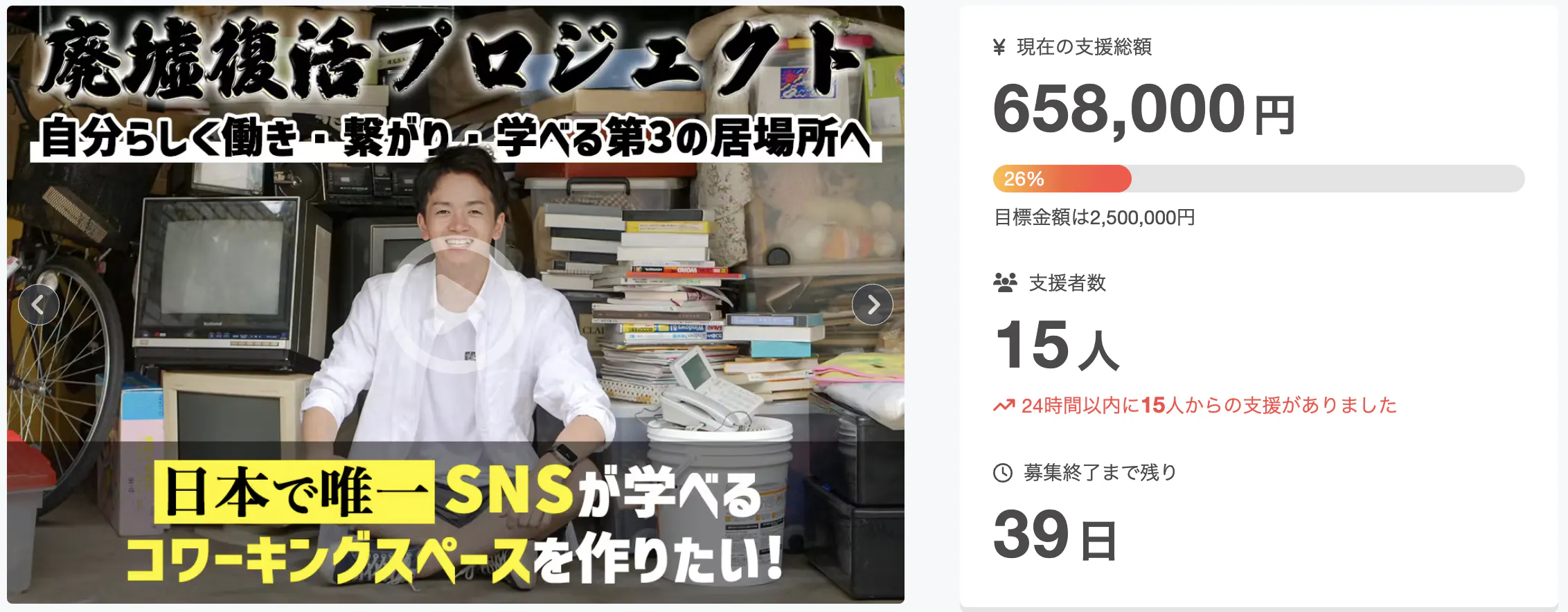 初日にこれだけの支援が集まりましたが正直、目標金額達成にはまだまだ未知数です。