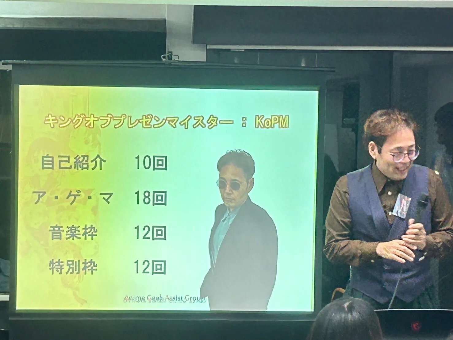 AG×2メンバーから立候補したプレゼンターが、自身のおすすめのアニメ、ゲーム、マンガを紹介し、観客がそれを見たくなるか、やりたくなるかを基準に審査し、投票していただきます。発表は1人10分、ジャンルは自由。プレゼンターが心からオススメする作品、ということだけが条件です。