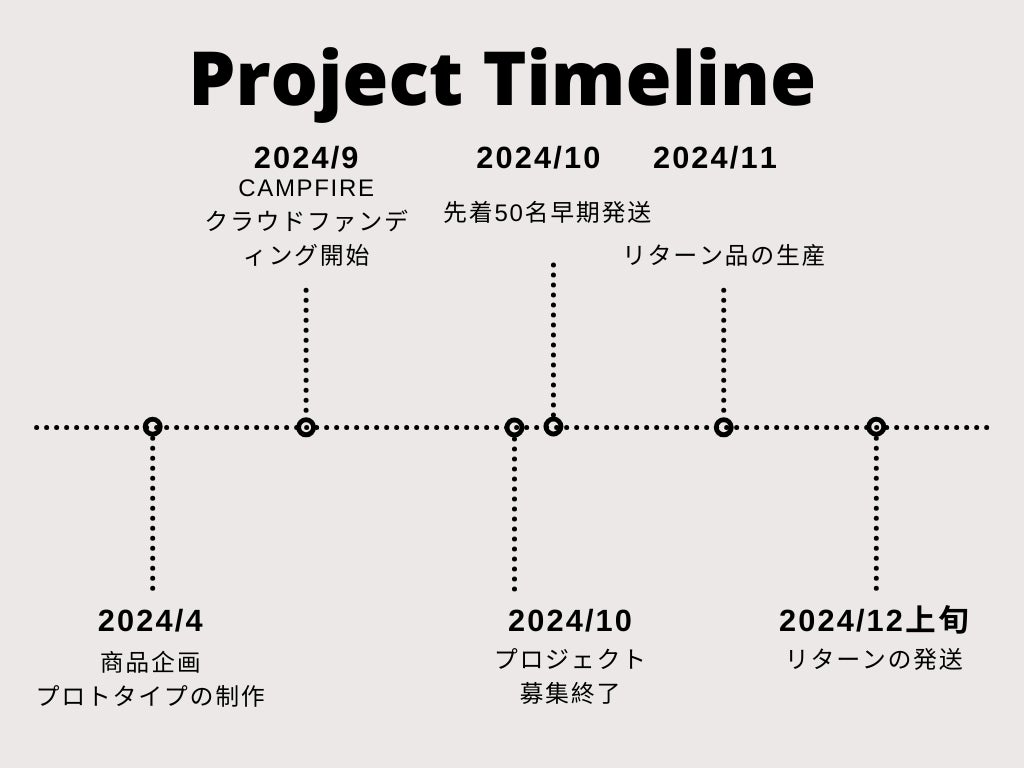 ◯ 商品引渡しまたは役務提供の時期:各プロジェクトが募集期間内に成立した場合のみ、支援金の決済が行われ、約定されたリターンを得る権利が発生します。なお、リターン毎の発送(履行)時期は各プロジェクトの記載・連絡に準じます。諸般の事情により遅延・遅配が生じる場合は、プロジェクトオーナーより記載・連絡されるものとします。