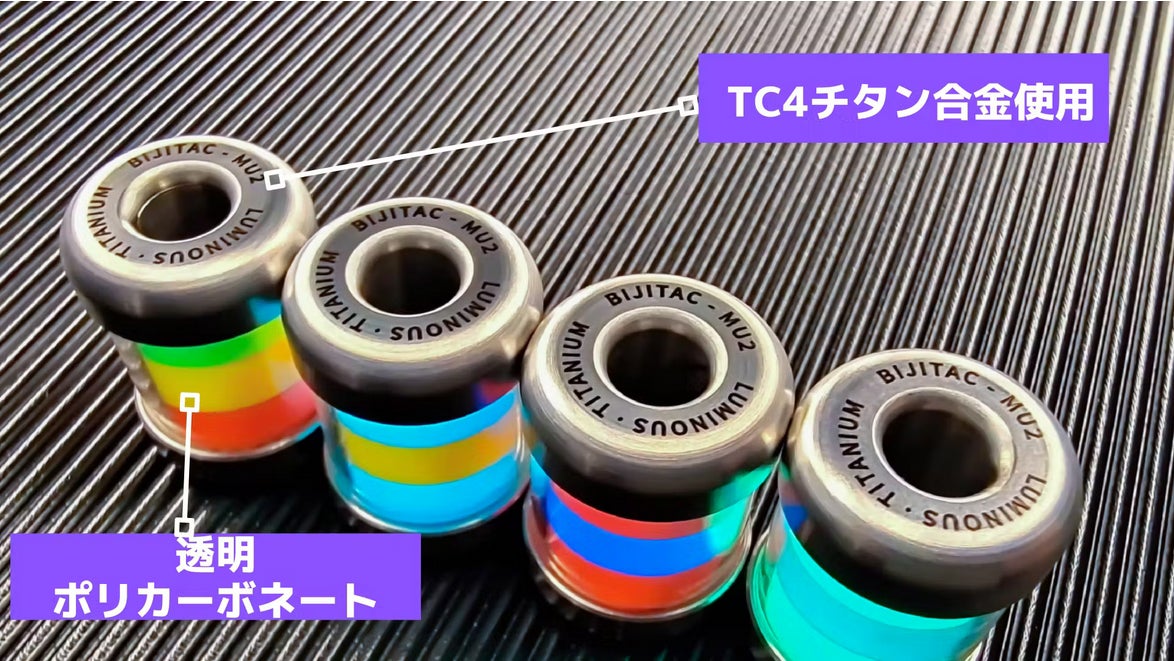 ・軽量で強度・耐食性・耐熱性に優れたTC4チタン合金から削り出したキャップを採用しているため、非常に軽くて頑丈です。