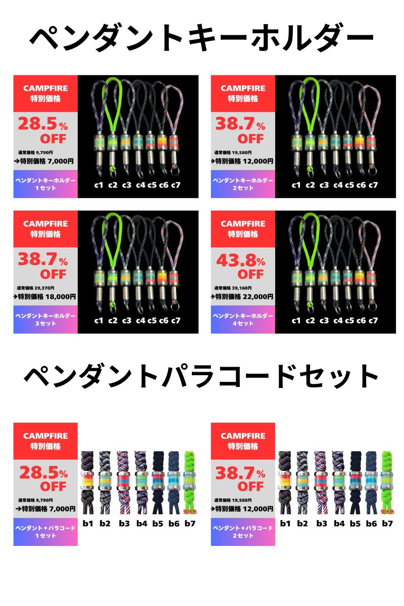 A:先着50名でペンダントとパラコード自由にカスタマイズしていたけます。