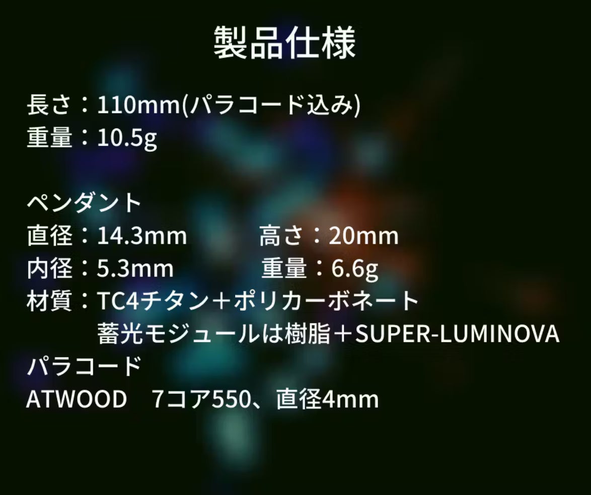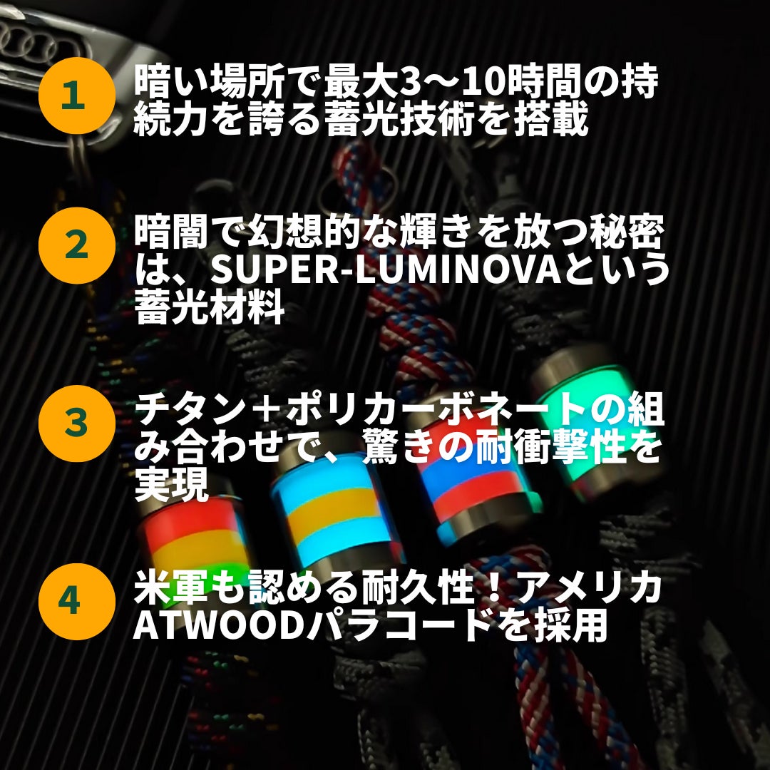 さらに、パラコードとペンダントを自由にカスタマイズできるようになり、あなただけのオリジナルデザインを楽しめます!夜をもっと楽しく、あなたの個性を光らせるペンダントを、今すぐ手に入れましょう!