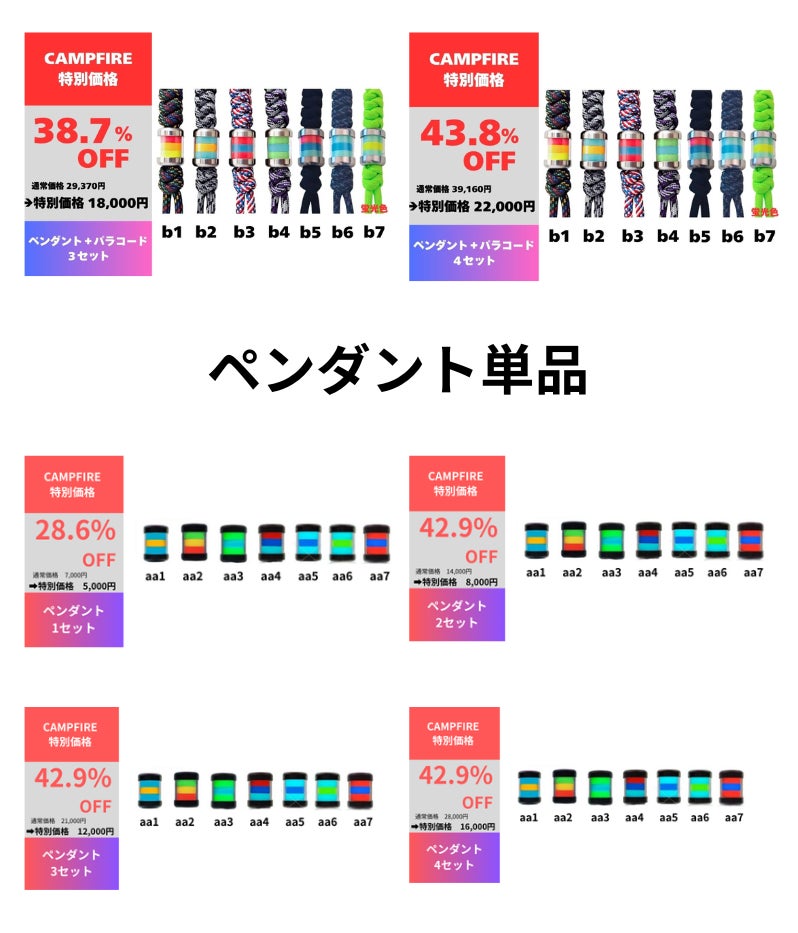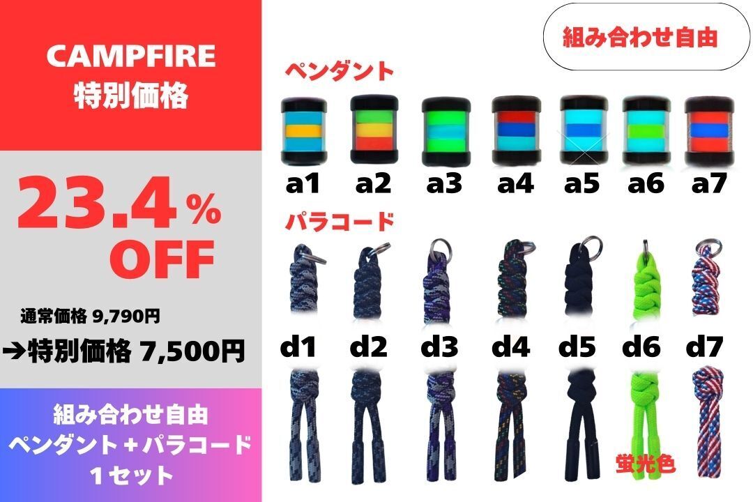 A:先着50名でペンダントとパラコード自由にカスタマイズしていたけます。