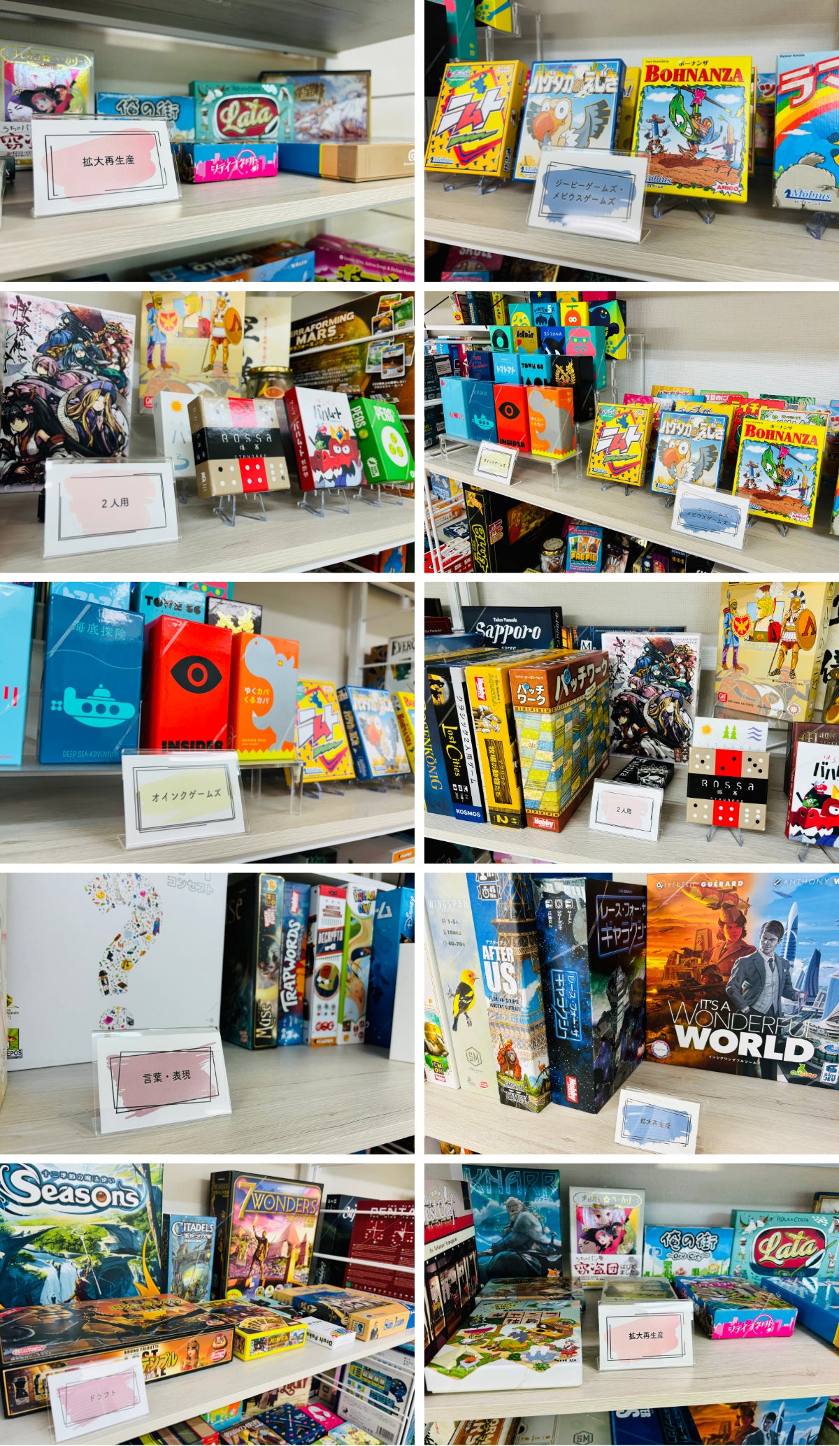 初心者向け〜上級者向け、二人用〜大人数用まで幅広いラインナップをご用意しております。「ボドゲ東京 渋谷店」のインスタグラムにて、一部ご紹介していますのでよろしければご覧ください!