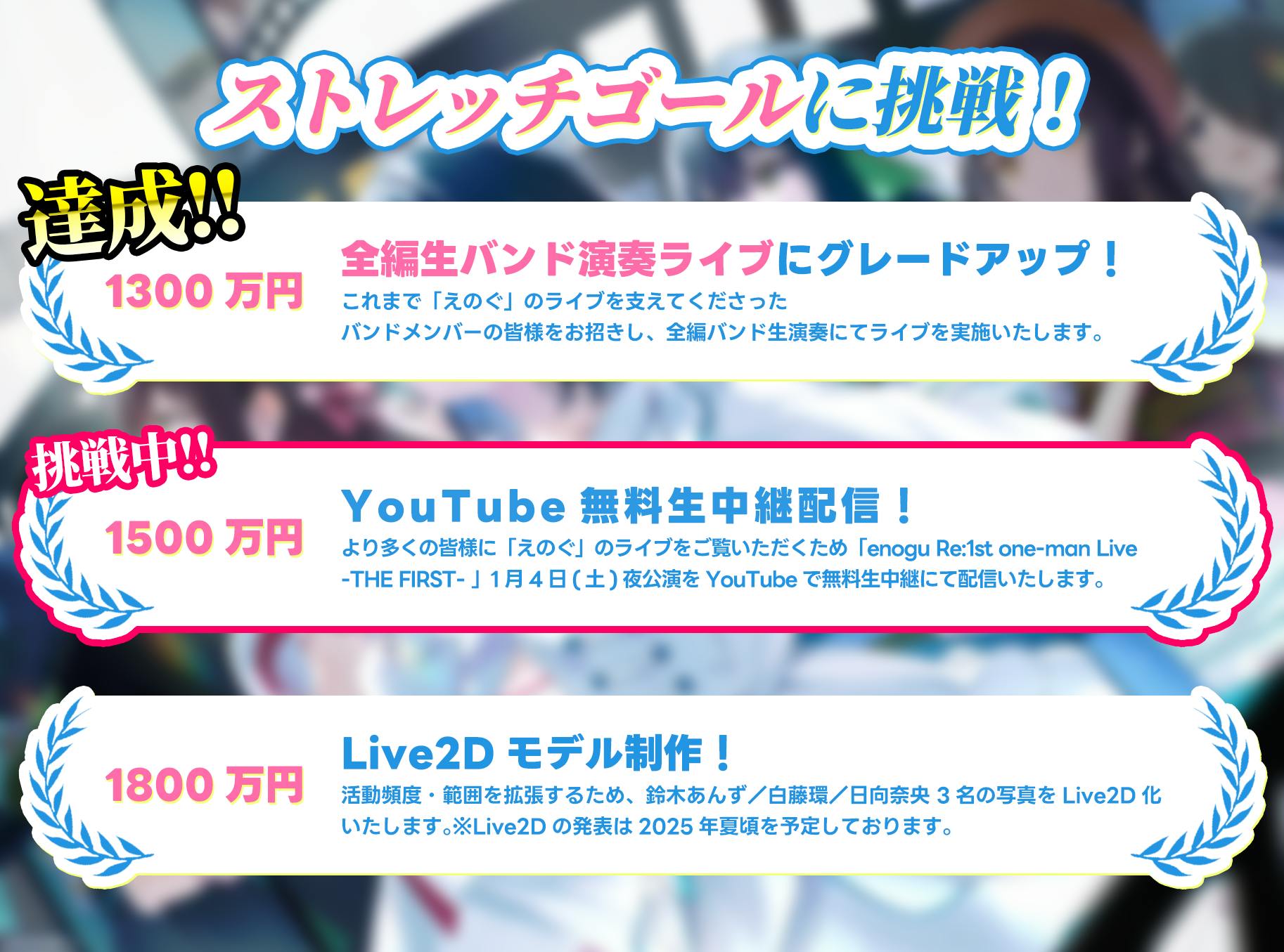 より多くの皆様に「えのぐ」のライブをご覧いただくため「enogu Re:1st one-man Live -THE FIRST- 」1月4日(土)夜公演をYouTubeで無料生中継にて配信いたします。