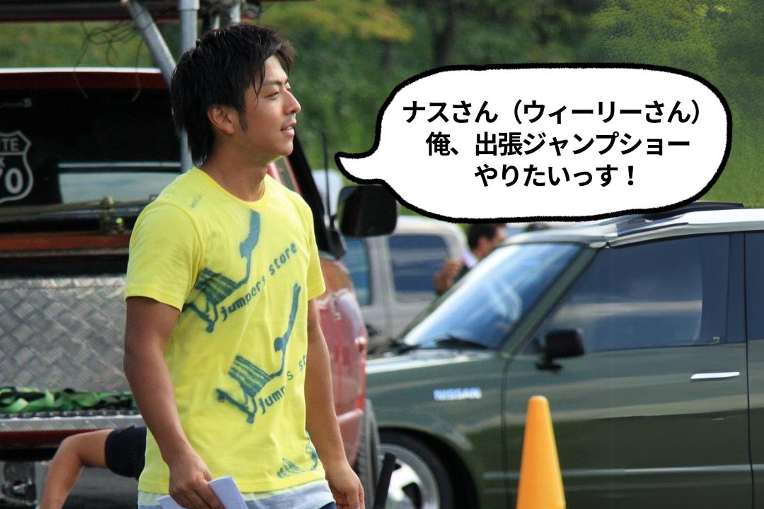 そんな中、この競技の魅力を感じてもらうため、ライダーの永井秀夫が「出張型ジャンプショー」をやりたい、と相談してきました。