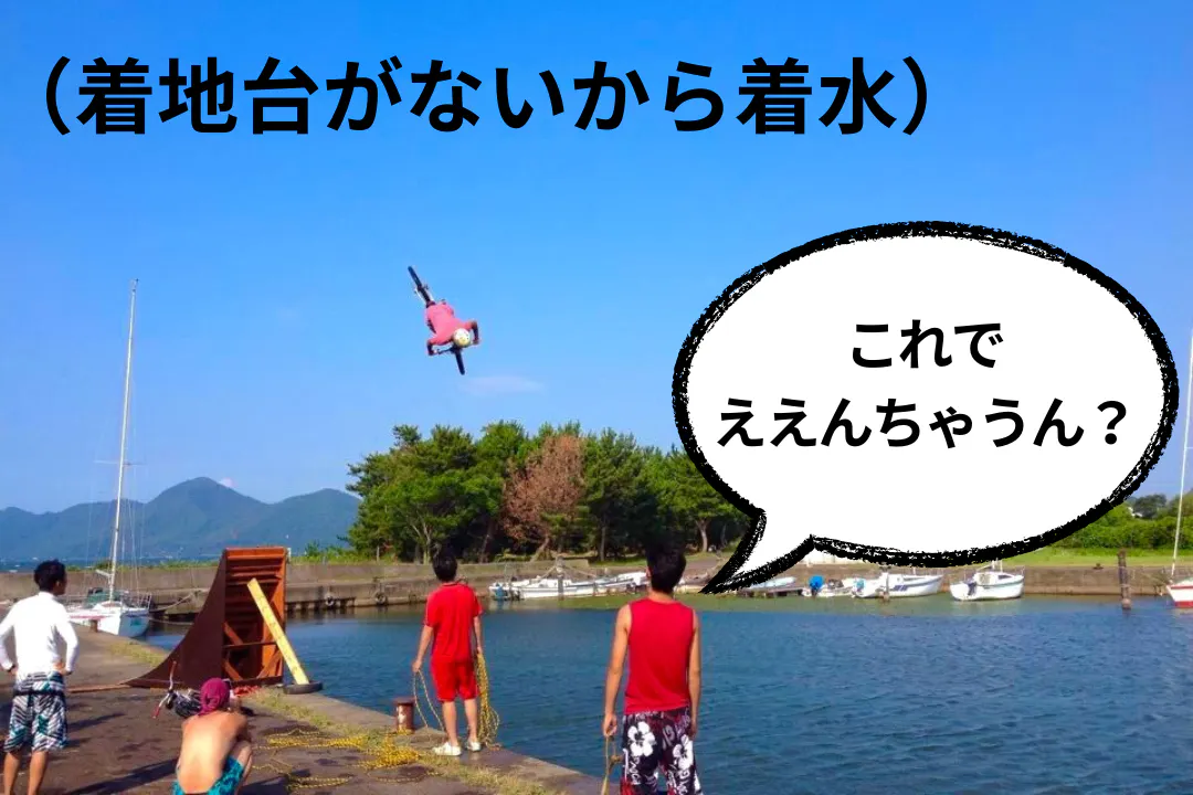 着地台がないからテストできない..ではなく「着水」できる場所でジャンプ台のお試ししました。