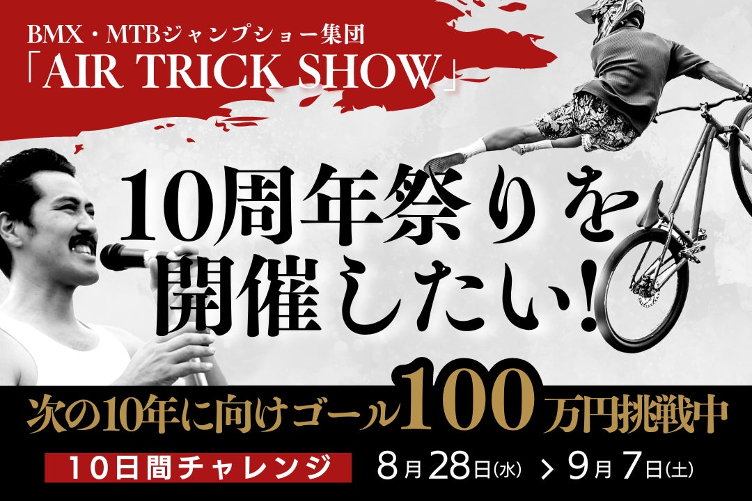 最初のショーからちょうど10年を迎える9月7日、千葉公園「芝庭エリア」で「10周年祭り」を開催し、立ち上げ当初から活躍するMTB・BMXライダーによる特別なショーを披露したいと思います。