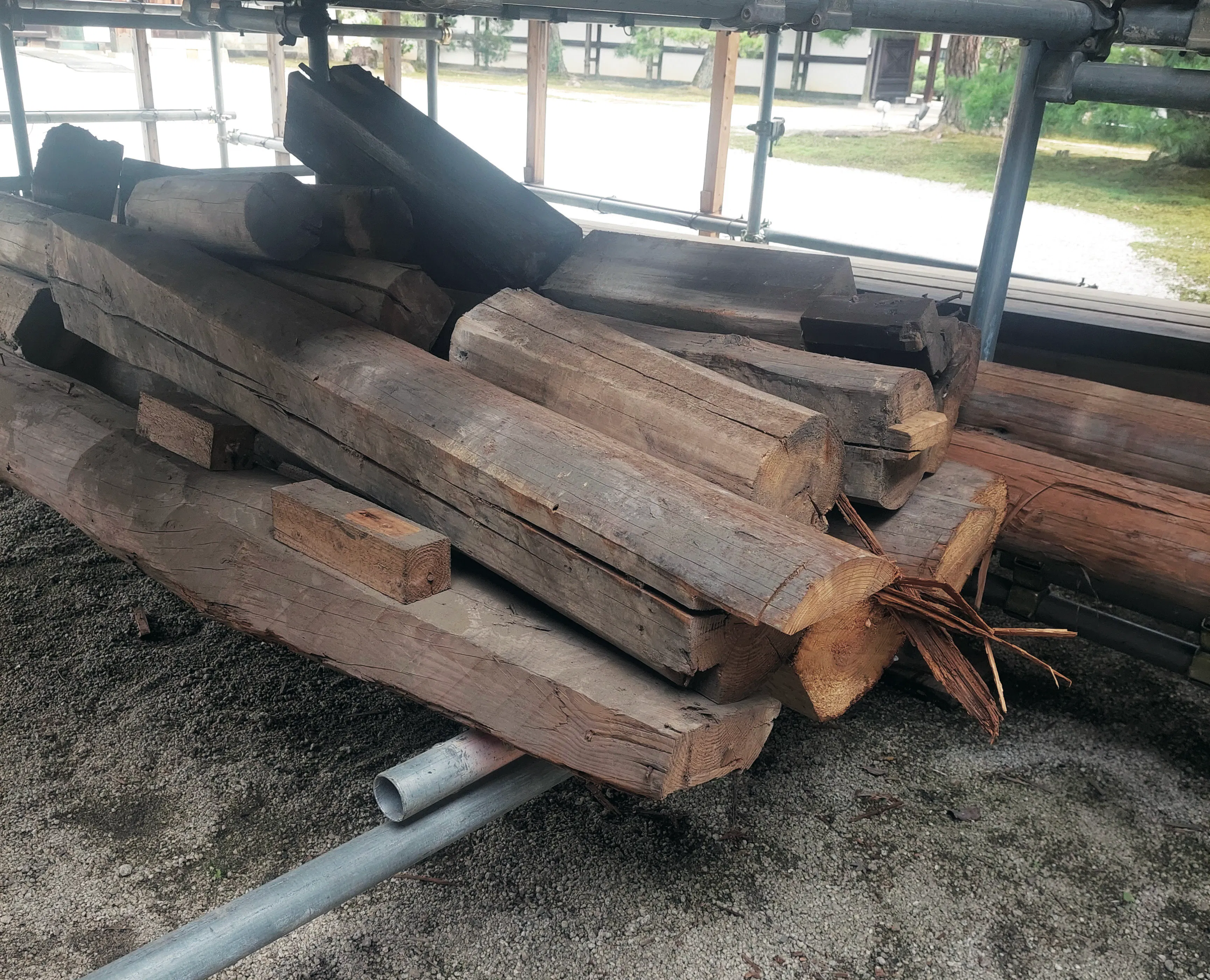 ◀今回の工事で出た古材