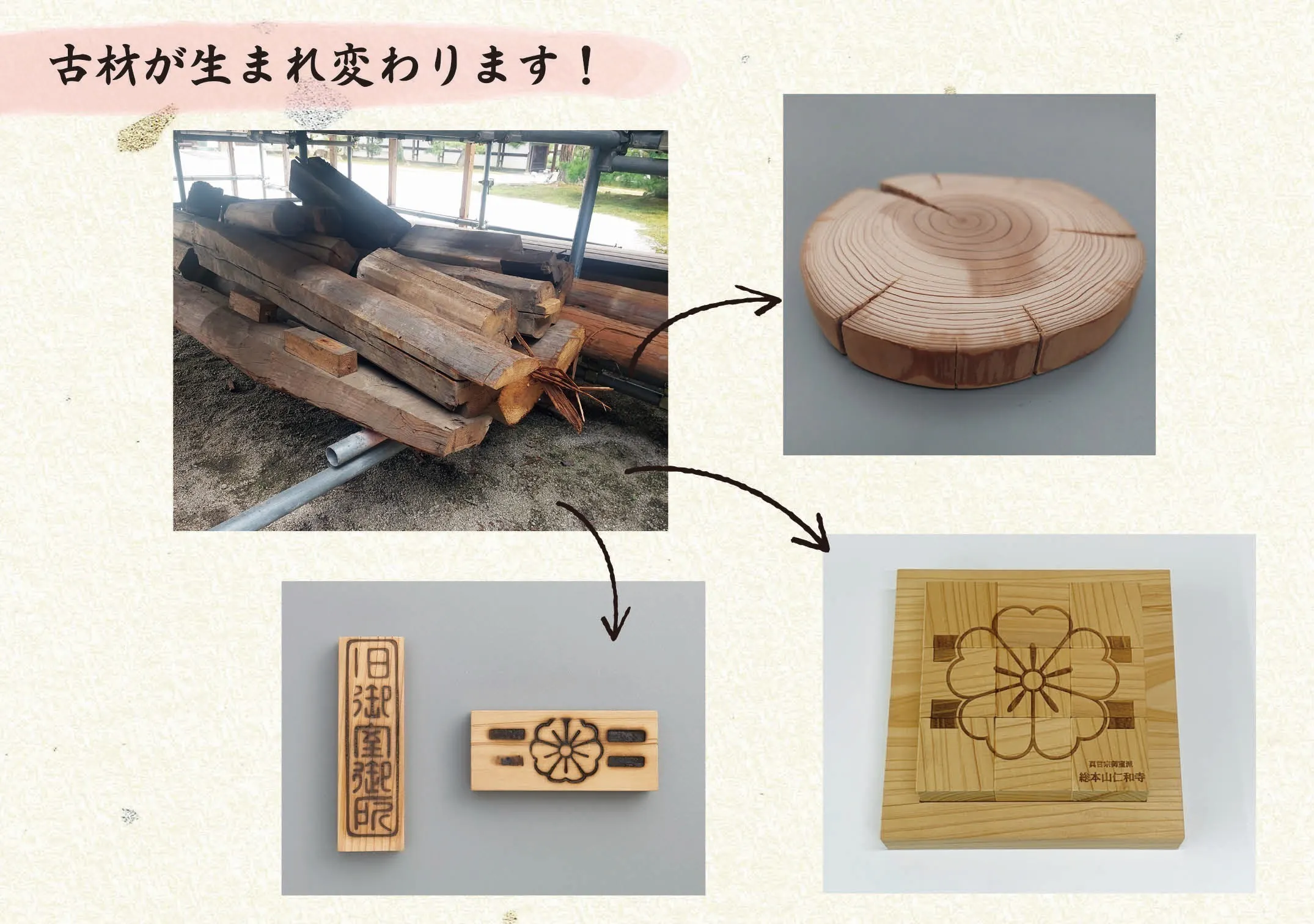 修理費用に充当することが目的ではありますが、古材を用いた返礼品を制作することで、仁和寺では未来へ繋ぐ文化財の活動として次世代への文化支援プロジェクトを行っており、より身近に感じてもらいたいと考えます。