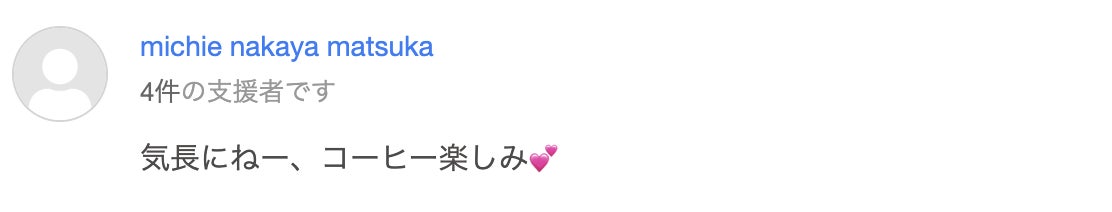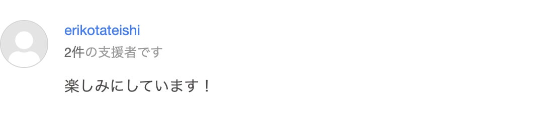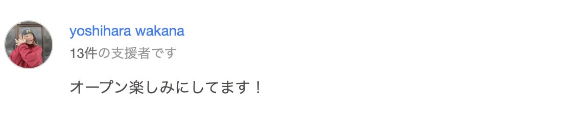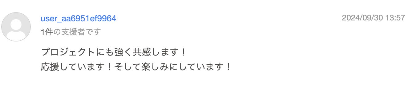 この度はご支援いただき本当にありがとうございます。本当に申し訳ないのですが、どなたなのか認識できてないこと、お詫び申し上げます。