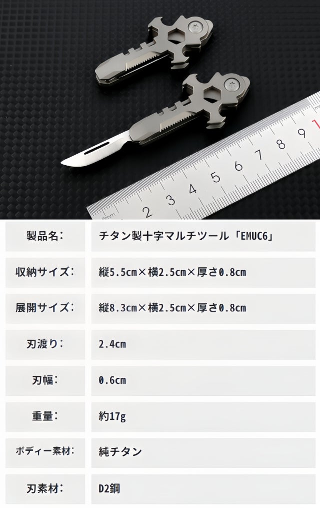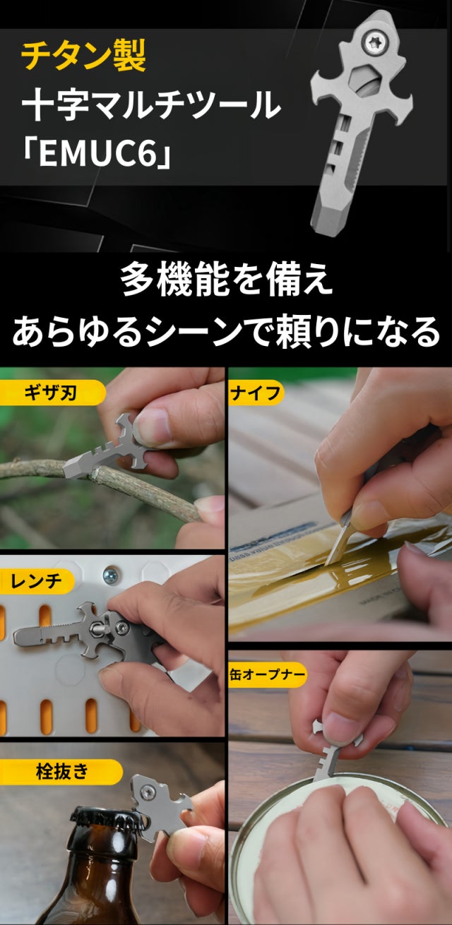 株式会社Emu-oneは チタン製十字マルチツール「EMUC6」の日本正式総代理店です。