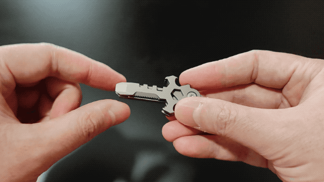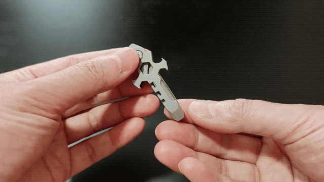 十字マルチツール「EMUC6」は、耐久性に優れたチタン製で、軽量で持ち運びが簡単です。
