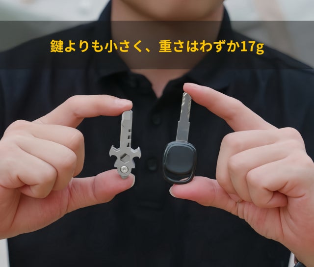 十字マルチツール「EMUC6」は鍵のサイズより小さいです。