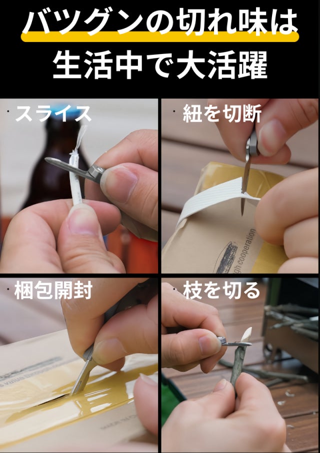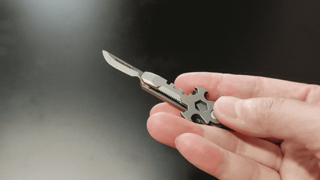 パッケージを開ける、ネジを締める、ボトルを開けるといった作業も、これ一つで対応可能です。