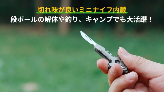 切れ味バツグンなミニナイフ内蔵でネットショッピングで届いた段ボールの解体はもちろん、釣りやキャンプでも大活躍です!
