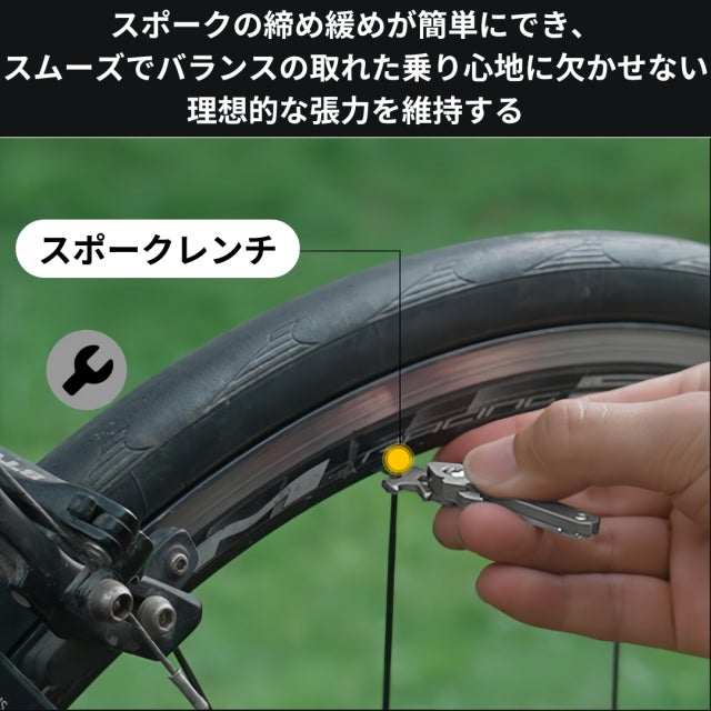 十字マルチツール「EMUC6」はスポークレンチ機能も搭載され、ホイールのメンテナンスに最適で、サイクリストやメカニック、自転車愛好家にとって必須のツールです。