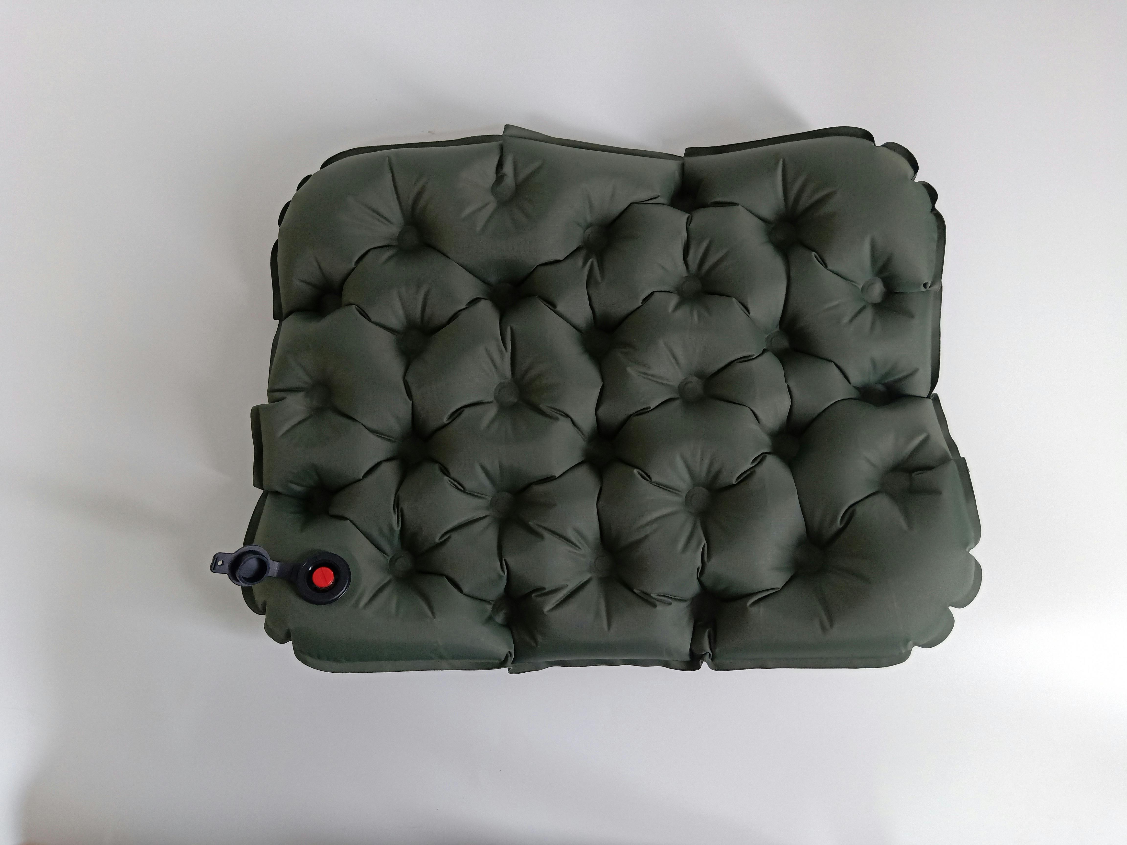 このエアークッションは、非常に軽量で持ち運びが容易です。専用のポンプを使用せずとも、わずか数回のプッシュで簡単に膨らませることができるため、アウトドアでの使用においても、面倒な準備を省くことができます。キャンプやビーチ、ピクニックなど、さまざまなアウトドアシーンでの活躍が期待できます。