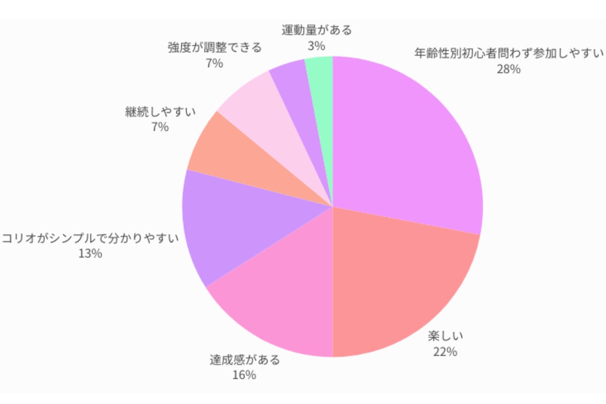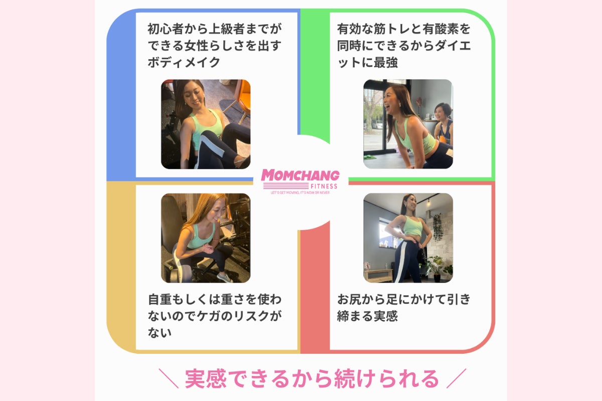 身体つくりはもちろんですが、曲に合わせて踊るように楽しくトレーニングをする内容で、気持ちが前向きになるというモムチャンフィットネスの親しみやすさが魅力なんだと思います。
