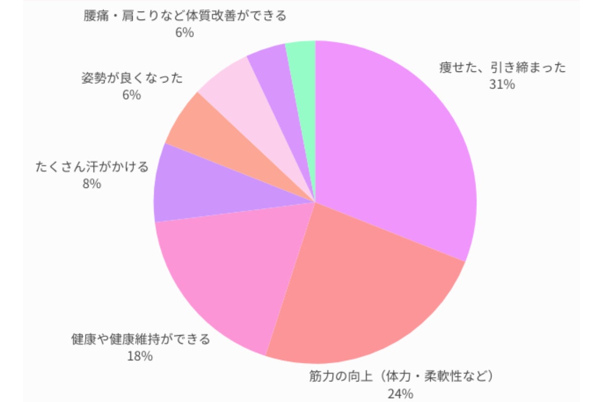 また、ボディメイクだけではなく、腰痛・肩こり改善や認知症予防にも効果が期待でき、幅広い年齢層の女性から支持されています。