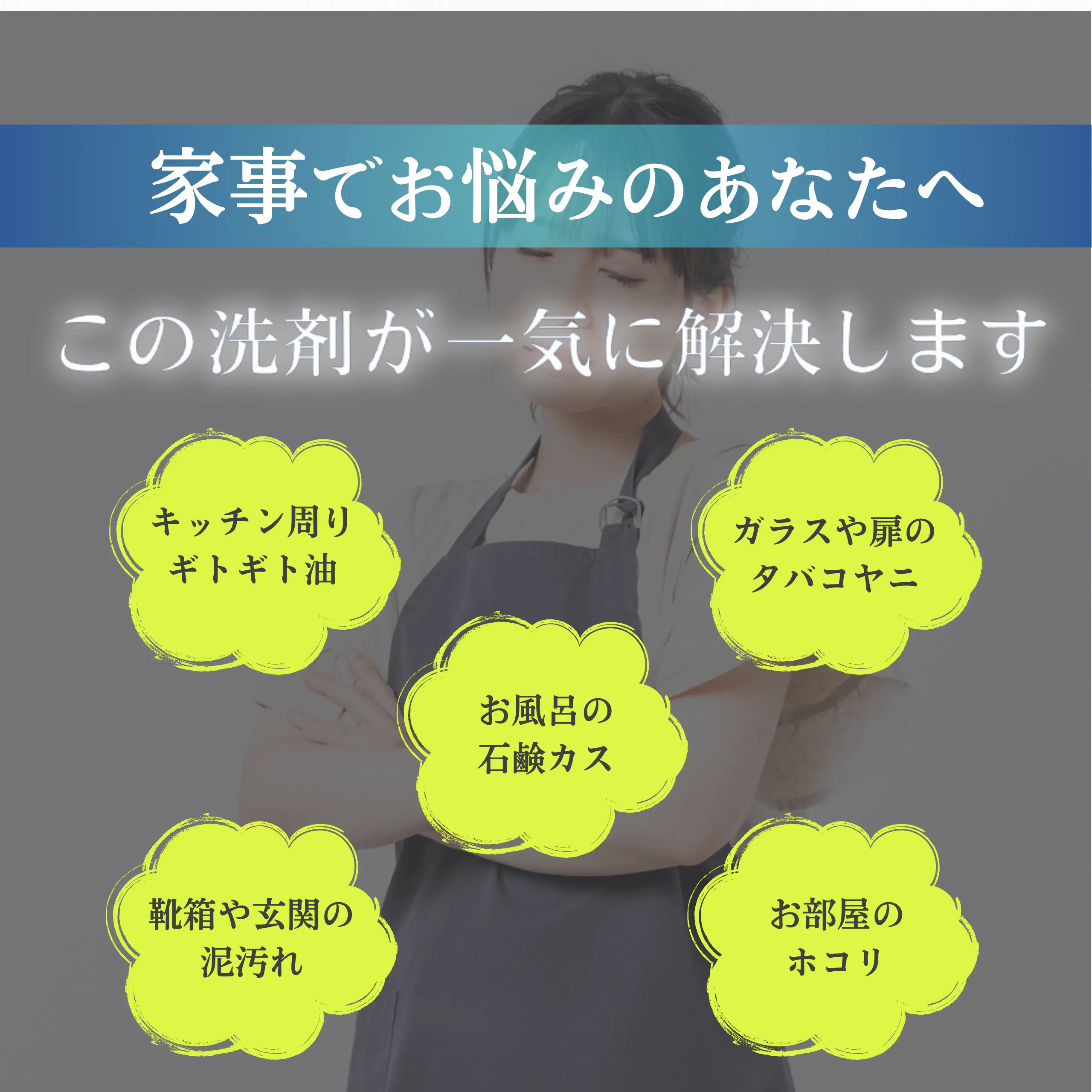 劇的な汚れ分解能力を持ち、更に洗剤特有の刺激臭もなく、ハーブ(ミント)の香りでリラックス空間を演出してくれます。