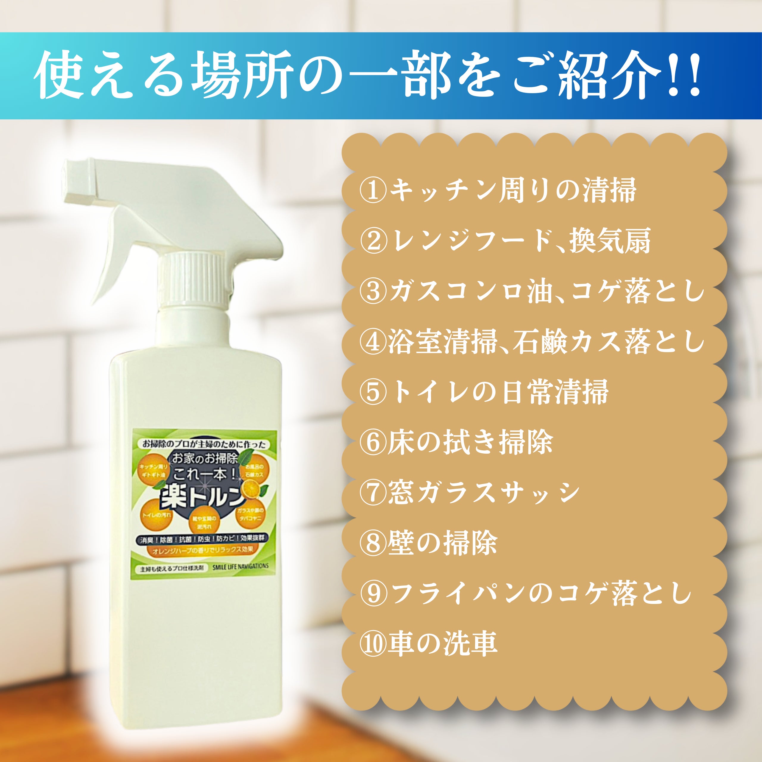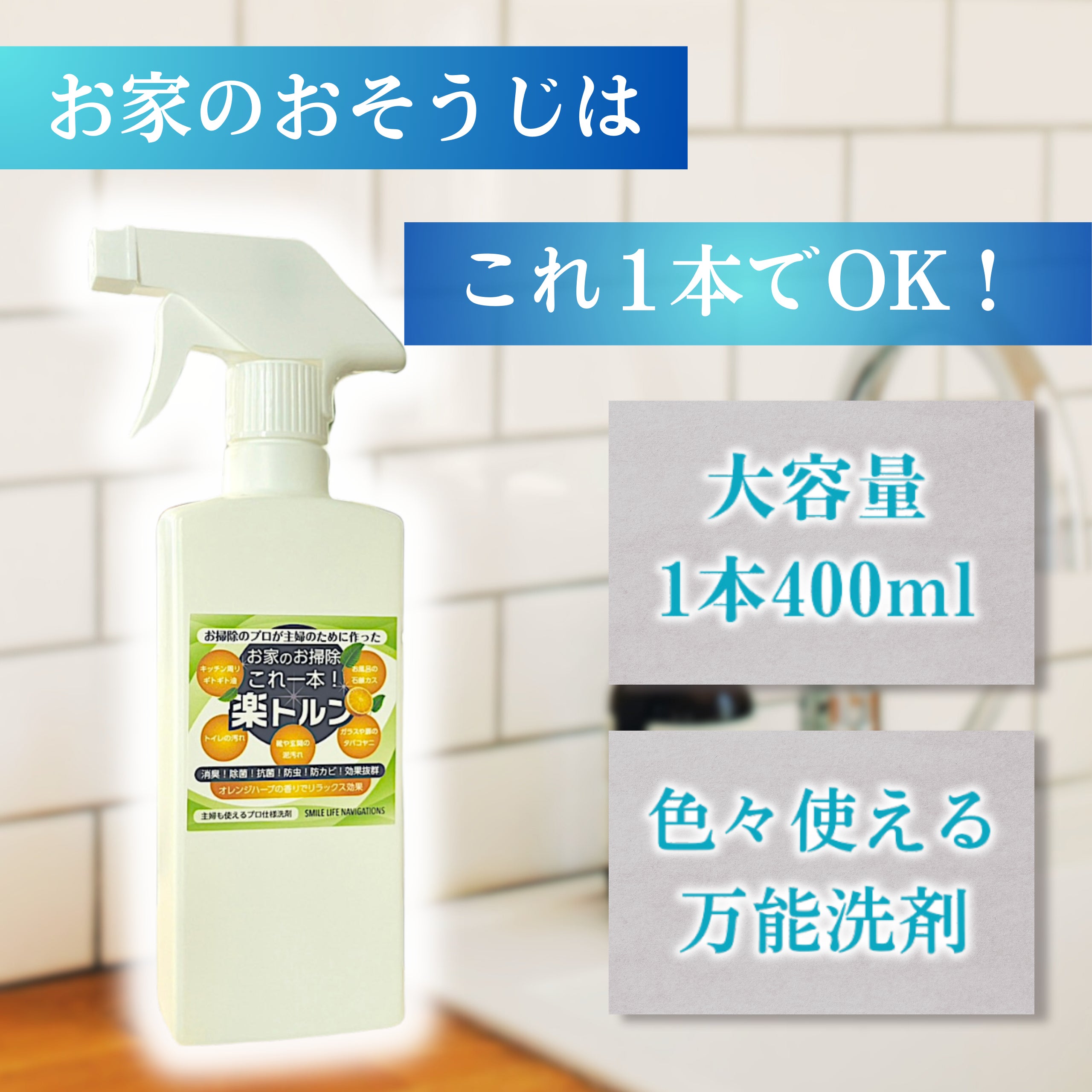 一般的な洗剤の場合、汚れを取り除く箇所によって洗剤が異なり、どうしても洗剤を掃除する個所ごとに買わなければいけない。しかし、楽トルンは全ての掃除に対応してます。