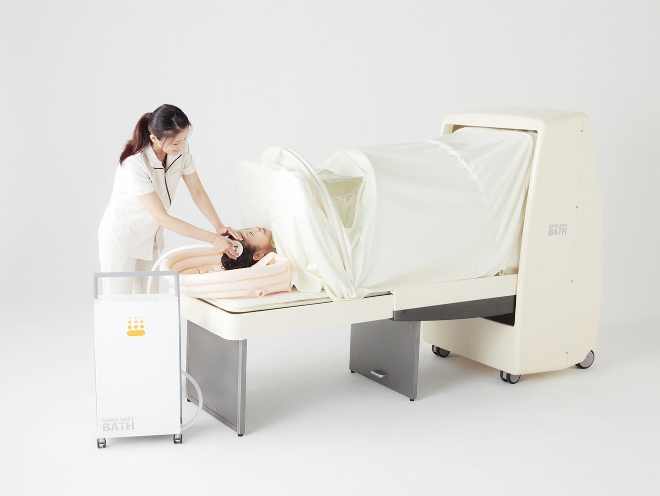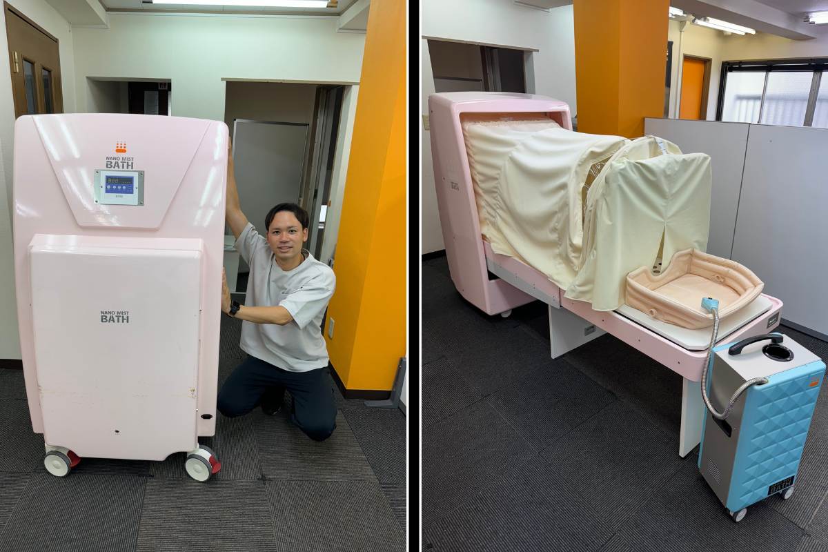 ご支援していただいた資金で購入する機械浴は「ナノミストバス ベッドタイプ」です。