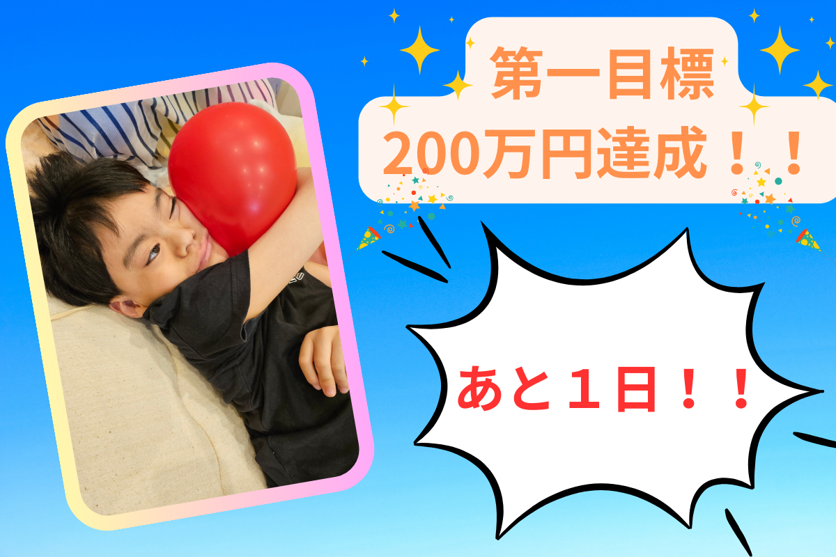 みなさん、こんにちは!ついに第一目標であった200万円を達成することができました!本当にありがとうございます!これも、支援してくださった皆さん一人ひとりの温かいお気持ちのおかげです。心から感謝申し上げます。そして、クラウドファンディングもいよいよ残り1日となりました。ここまで多くの方に応援していただき、励まされながら進めてくることができました。最後の最後まで決して諦めずに走り切ります!あと1日、まだまだご支援とシェアのご協力をお願いできれば幸いです。最後までお付き合いくださいますよう、よろしくお願いいたします!横井 咲真
