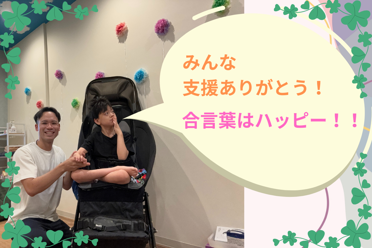 みなさん本当にありがとうございました!!クラウドファンディングが無事終了し、最終的に68人の方から合計2,152,500円ものご支援をいただきました!目標額には届きませんでしたが、こんなにも多くの方に応援していただけたことに、感謝の気持ちでいっぱいです。本当にありがとうございます!ここからは、放課後等デイサービス「あいハピ」の開業に向けて、本格的に準備を進めていきます。「あいハピ」という名前には、【合言葉はハッピー】という想いが込められています。子どもたち、そのご家族、そして施設に関わる従業員や地域の皆さん、全ての人がハッピーになれる場所を作りたい。そんな願いからこの名前をつけました。たくさんの方の支援を受け、応援の声を胸に、素敵な施設を作るために精一杯頑張ります。進捗はこれからも報告していきますので、引き続き見守っていただければ幸いです。皆さん、本当にありがとうございました!横井 咲真