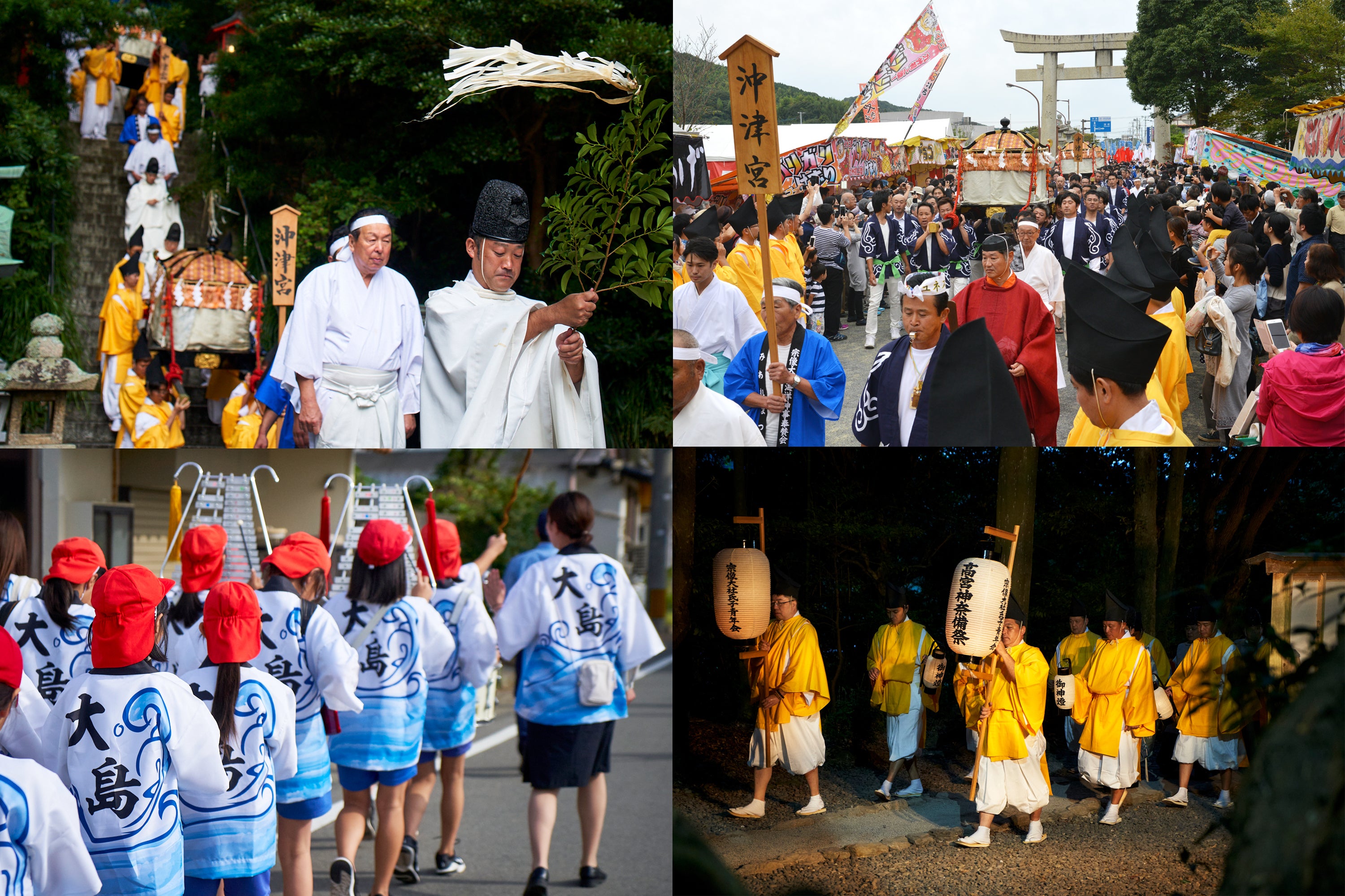 みあれ祭の様子宗像市は福岡市と北九州市のちょうど中間に位置し、美しい海と森に囲まれ、四季折々の美しい風景やおいしいものに恵まれています。宗像大社を中心に多くの神社があり、歴史深い街です。