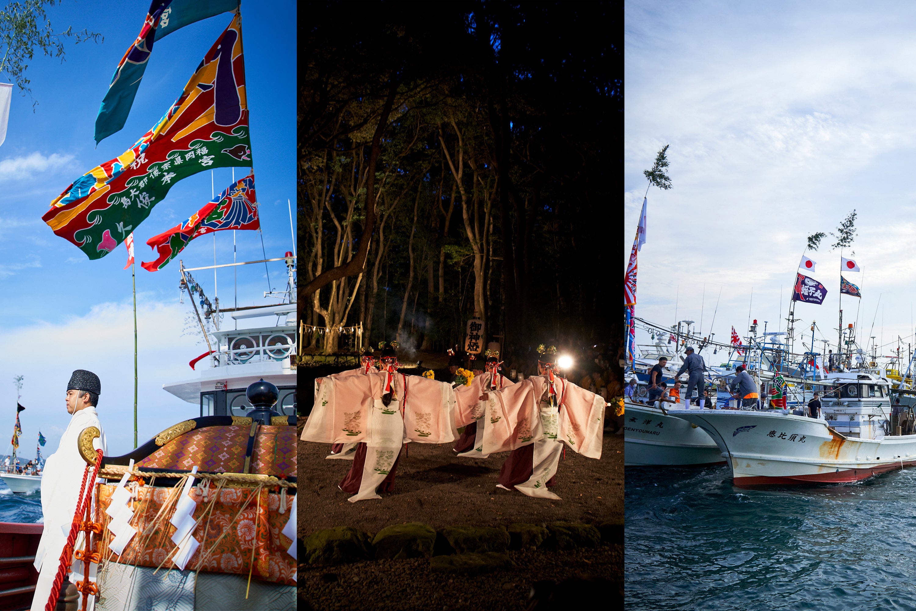 宗像大社で毎年10月1日に行われる「みあれ祭」という神事では、三宮に別れて鎮座する姫神が年に一度お集まりになることで、新たな神の力の誕生を意味します。